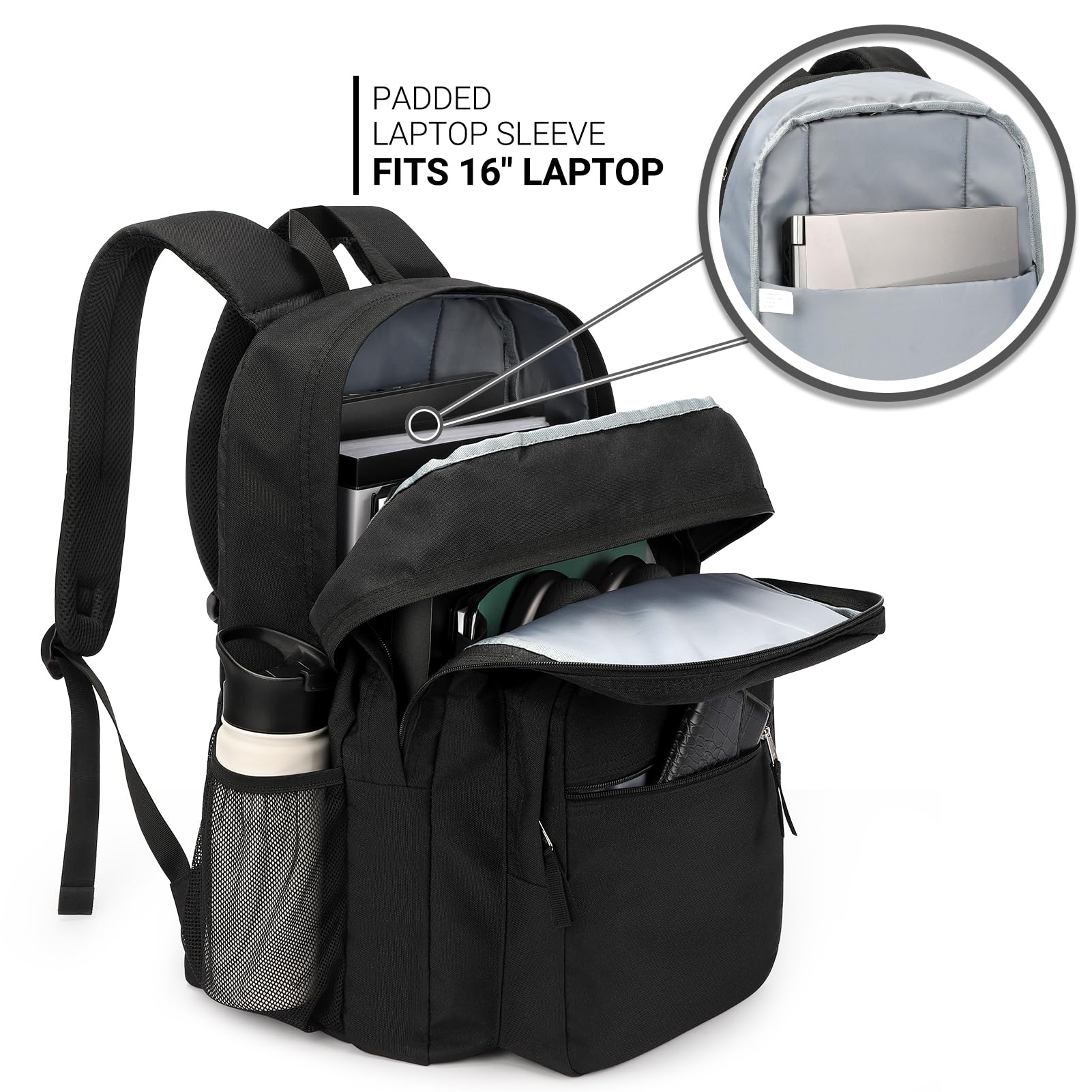 Convenient Storage Backpack: Our unisex laptop backpack features two main compartments, including a dedicated laptop sleeve for up to 16" devices. It also boasts a discrete front stash pocket, a utility pocket with an integrated organizer, and an additional external zippered pouch for quick access. Plus, two side pockets accommodate various water bottle sizes.