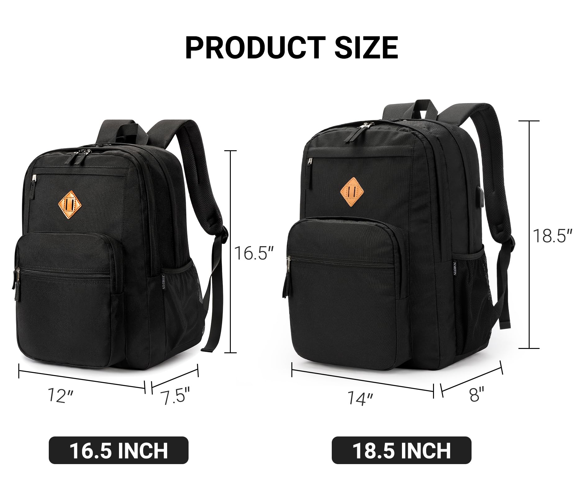 36L Capacity School Backpack: 18.5"x14"x8" - Roomy Design for Essential Storage.