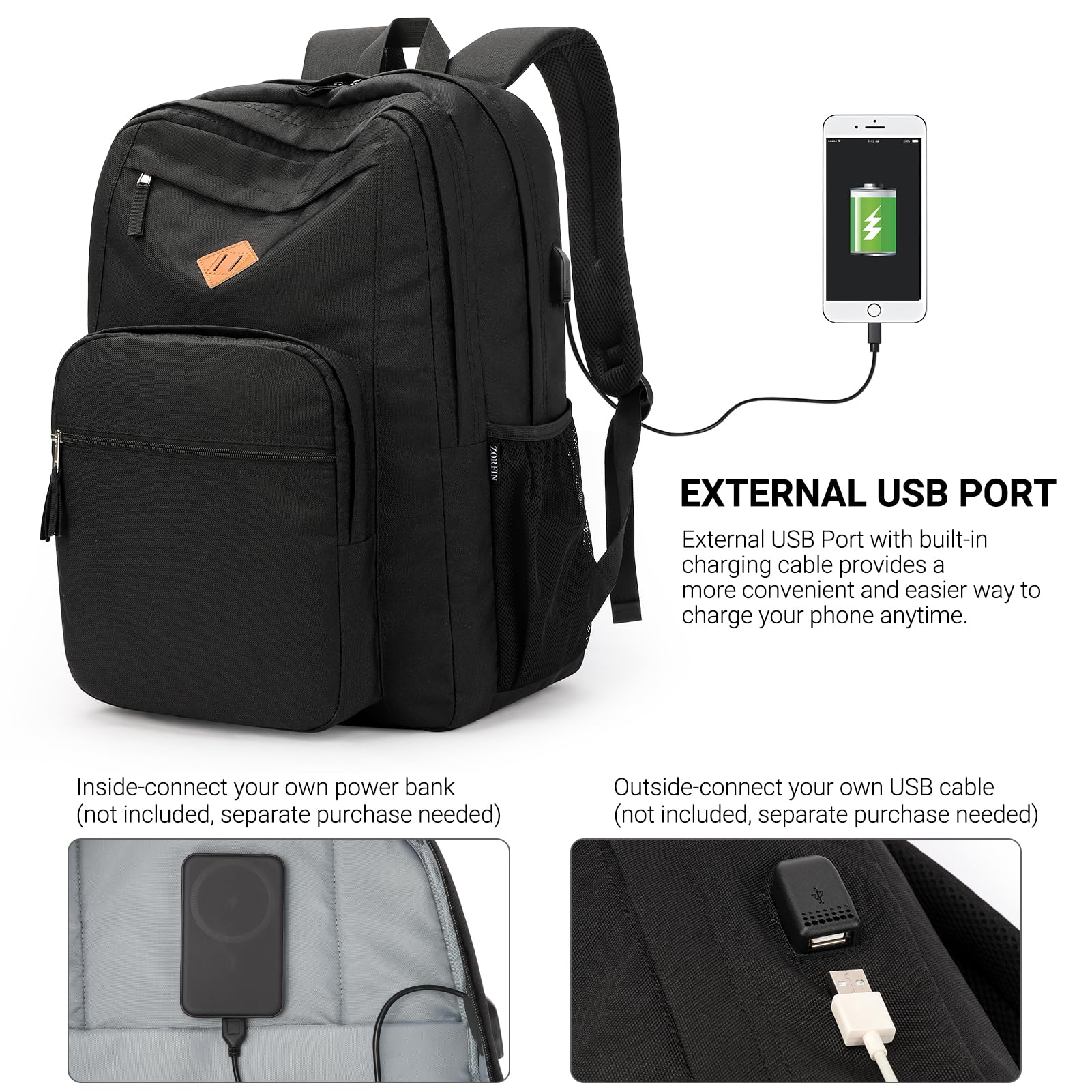 USB Port Design: This USB backpack features an external built - in USB charger and an internal built - in charging cable. It allows you to charge your phone conveniently while on the go. Note that the backpack itself doesn't have a power source; the USB charging port simply provides an easy way to charge.
