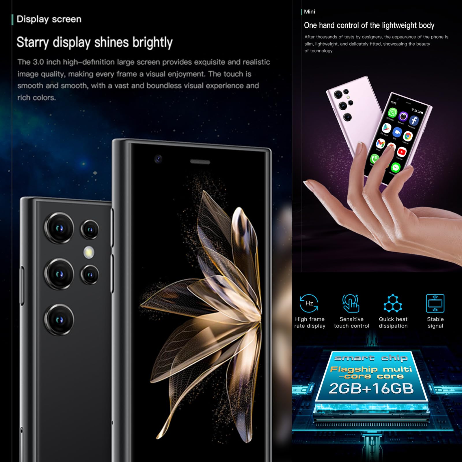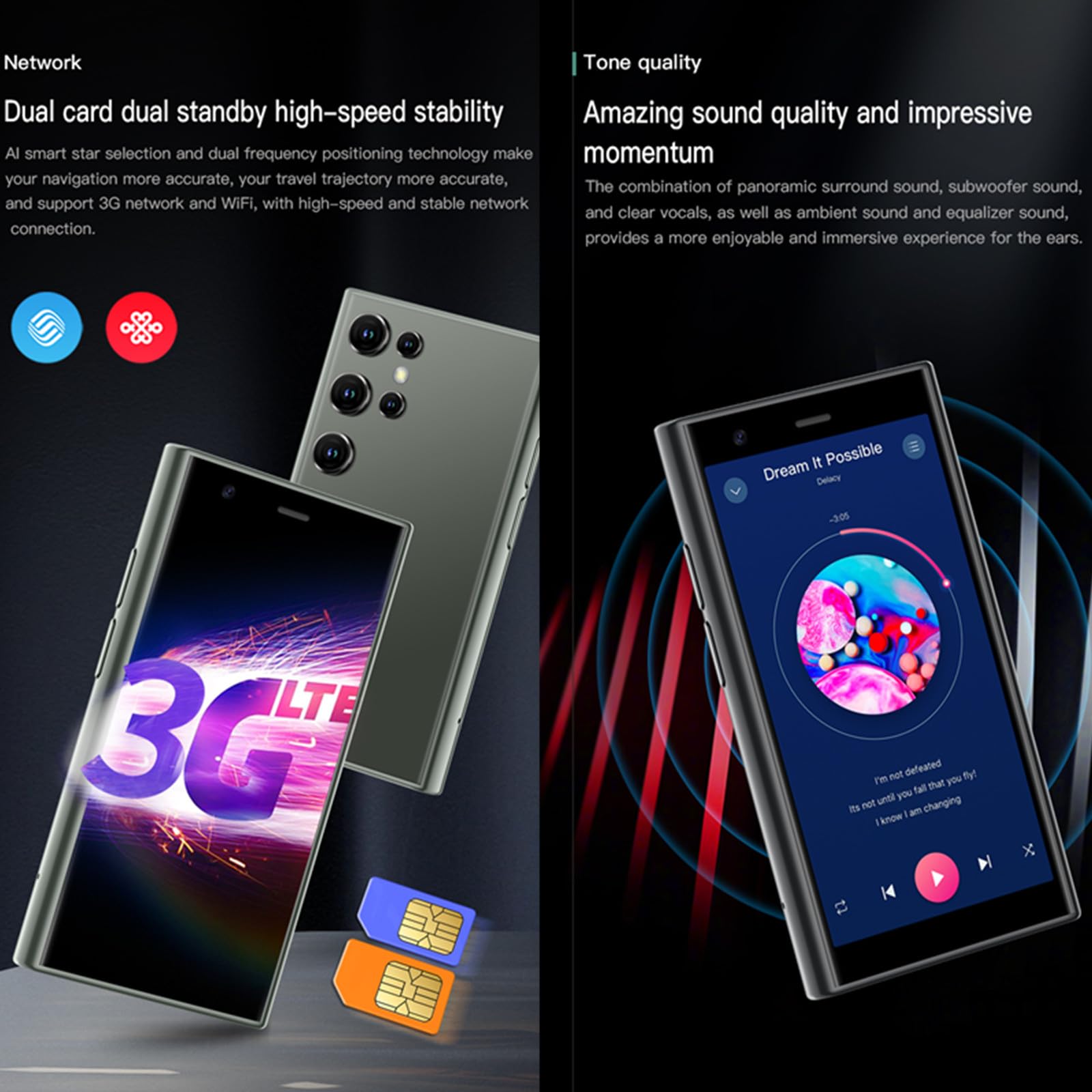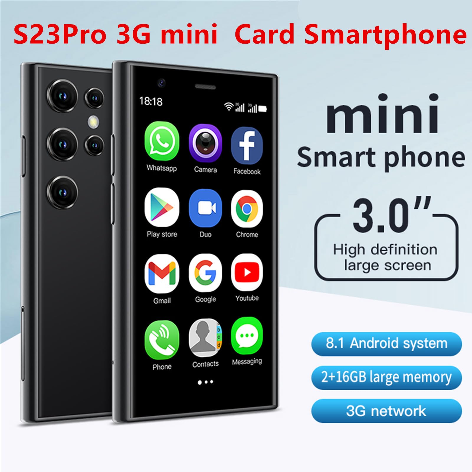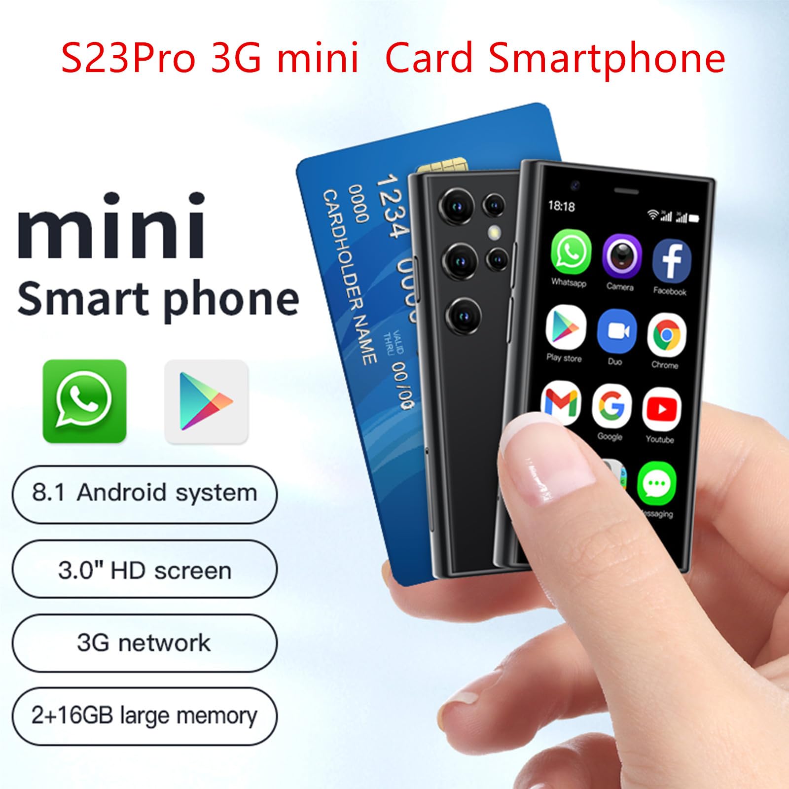 📞【 S23 Pro Mini 3G Smart Phone 】Lead to the trend of the mini smart phone. This is a 3G smartphone, Some sim card carriers have cut off 2G and 3G network, Please make sure your sim card supports more than one of these frequency: WCDMA/B1/B2/B5/B8/ GSM 850/900/1800/1900