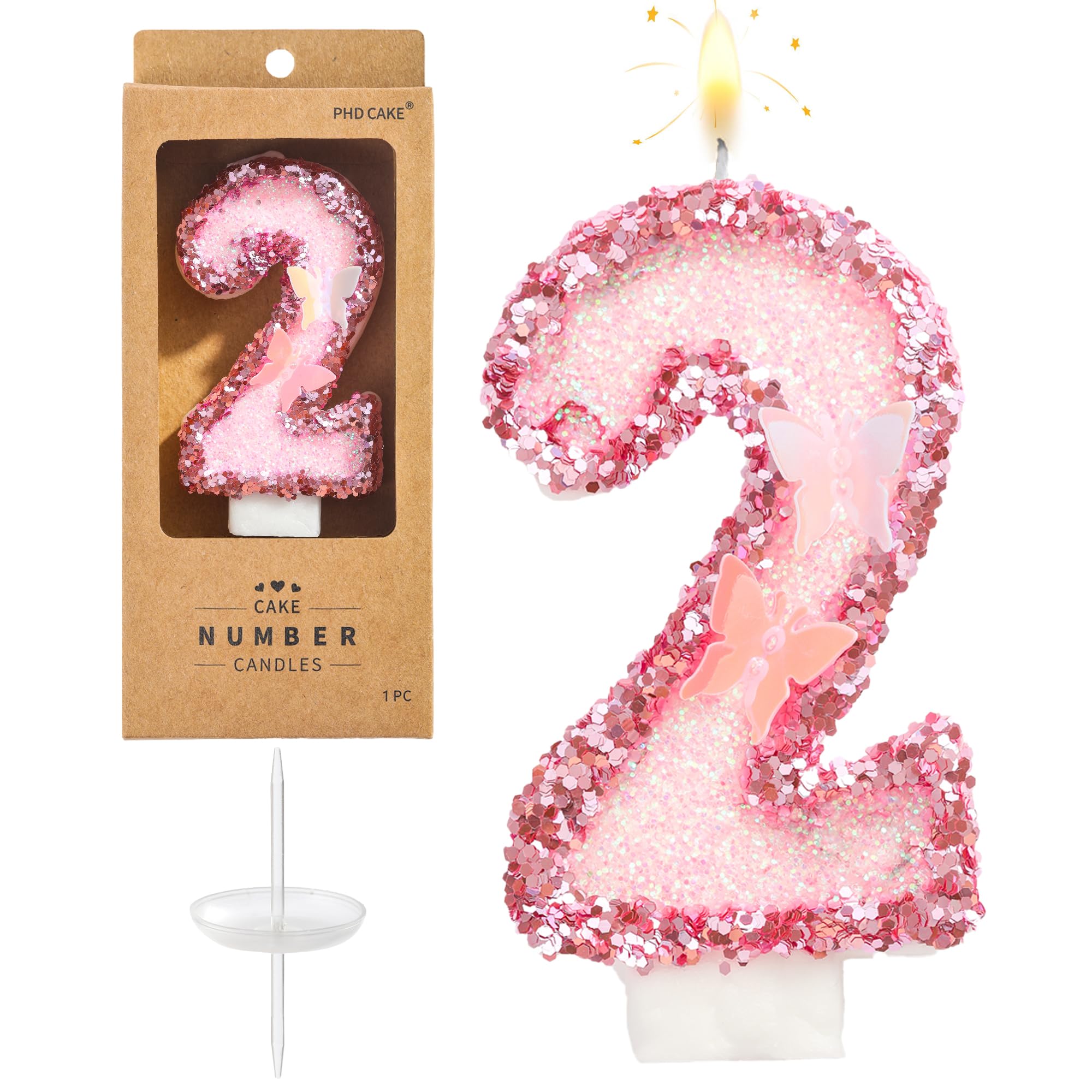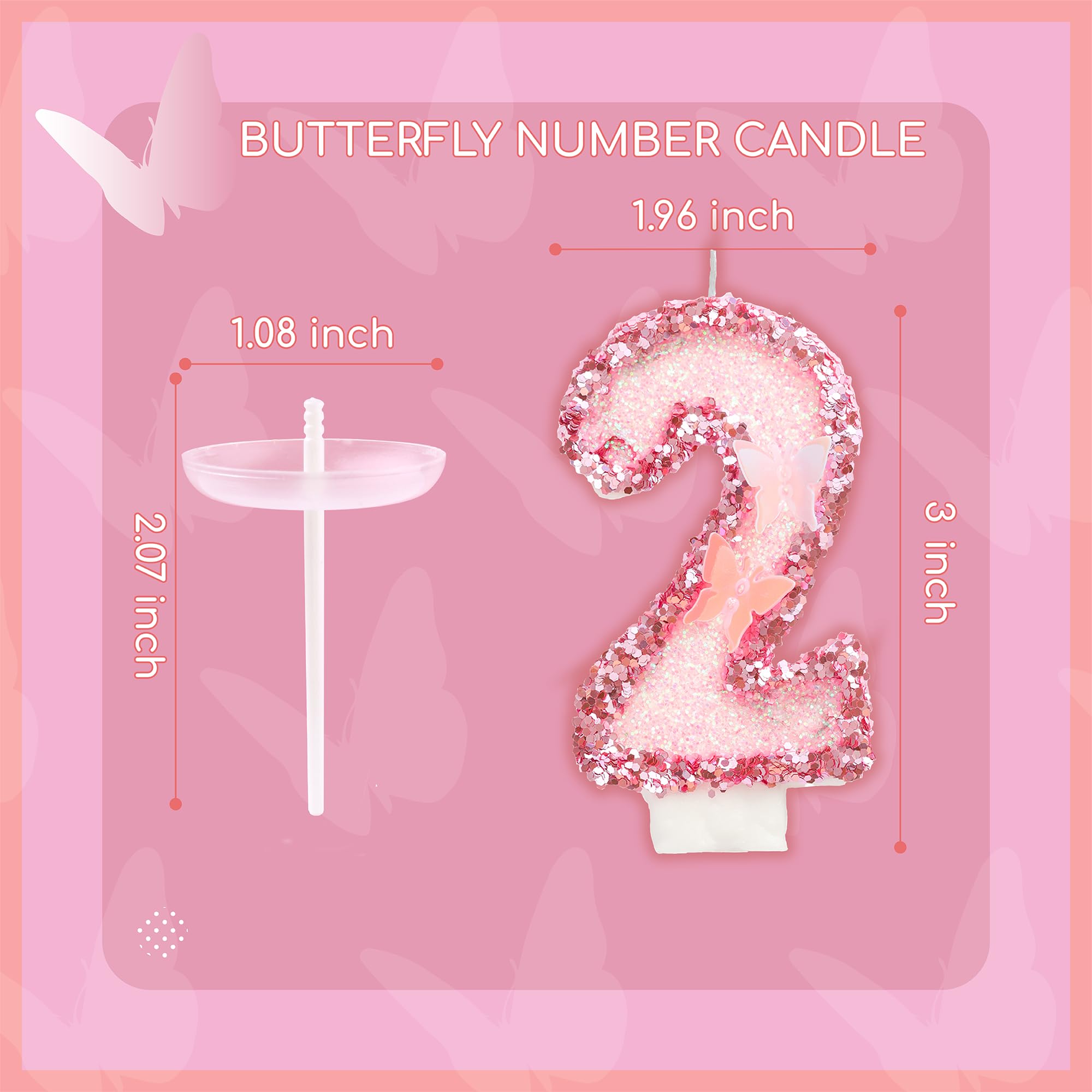 New: 3 Inch Large Pink Butterfly 2 Number Birthday Candle designed to make your cake a memorable celebration!