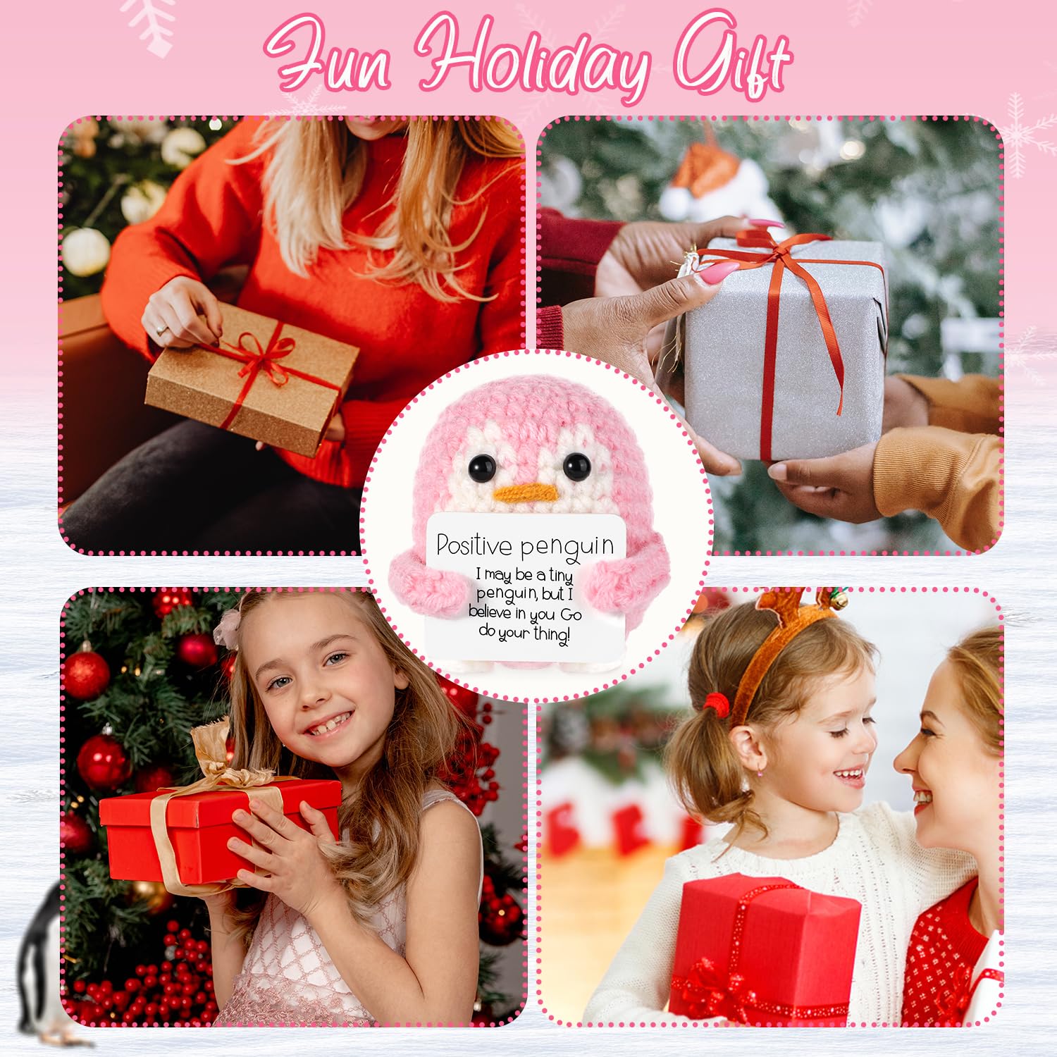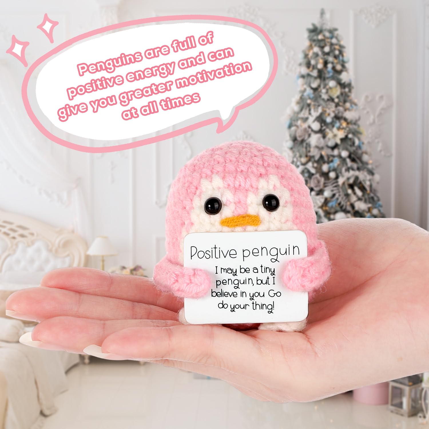 Package Content: You will receive a knitted positive penguin with a card printed encouraging words on. The penguin doll is light pink, which is adorable and eye-catching.
