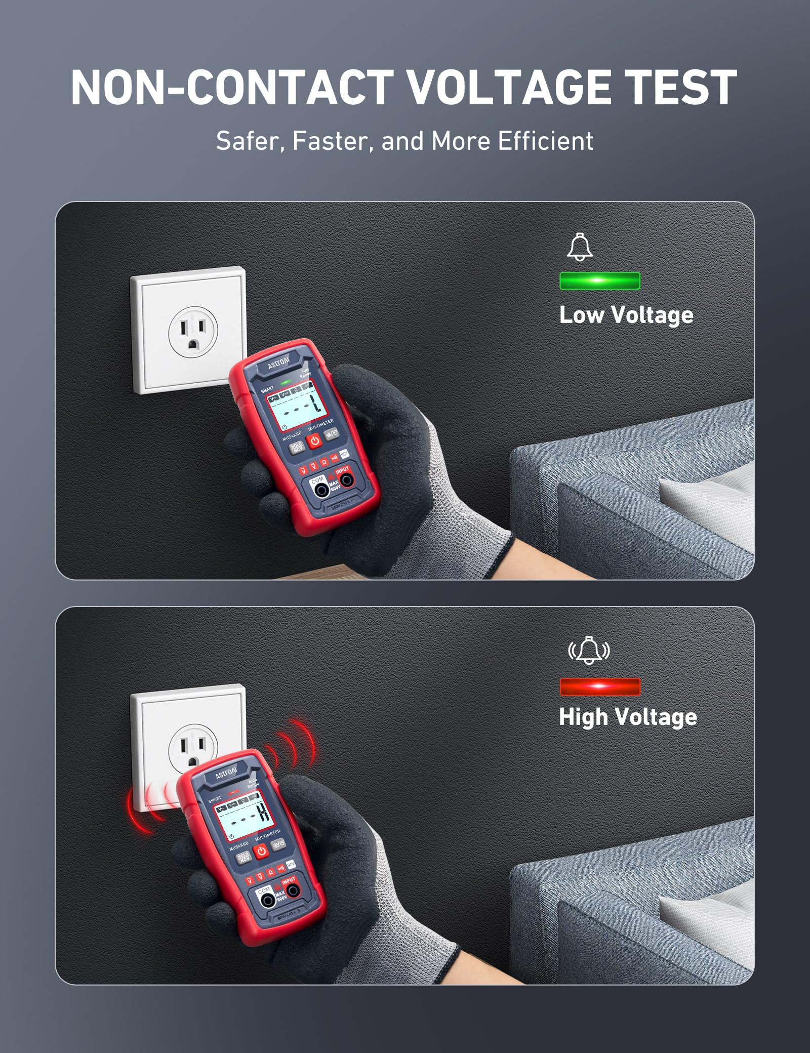 Smart & Auto Ranging - Automatically detects AC/DC voltage, resistance, and continuity. Eliminates the need for manual dial adjustments, reducing inaccurate results and enhancing safety and ease of use. This tool is ideal for DIY enthusiasts, electricians, and engineers alike.