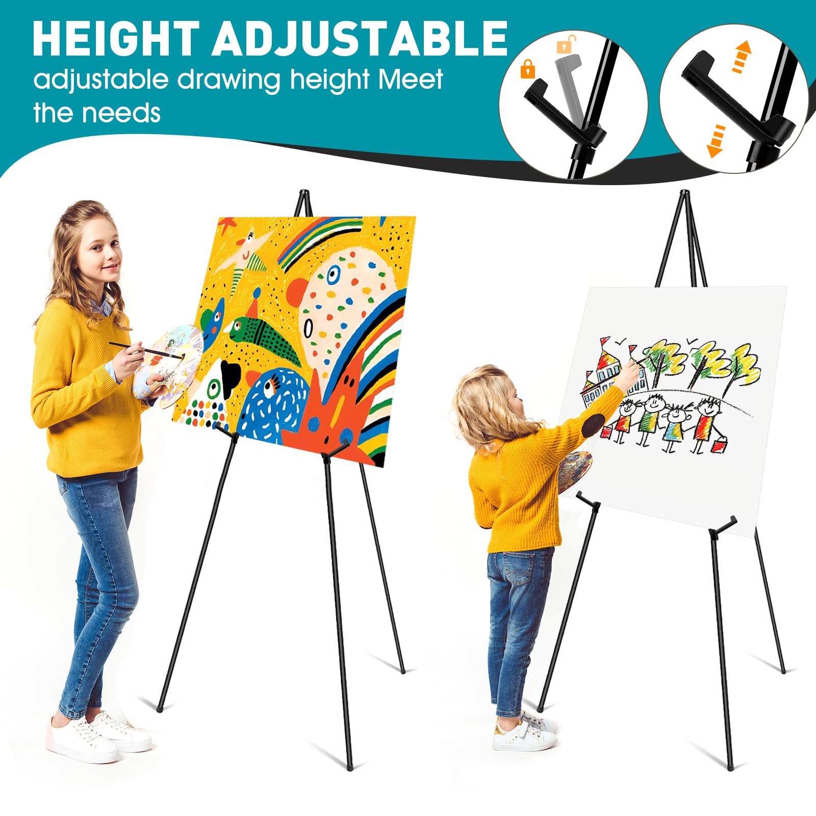【Easy to carry】Each poster stands for display comes with an 17.7" bag so that easy to carry,weight 2lbs,package include 1 pack black easel and a storage bag. It is the great choice as portable travel easel.