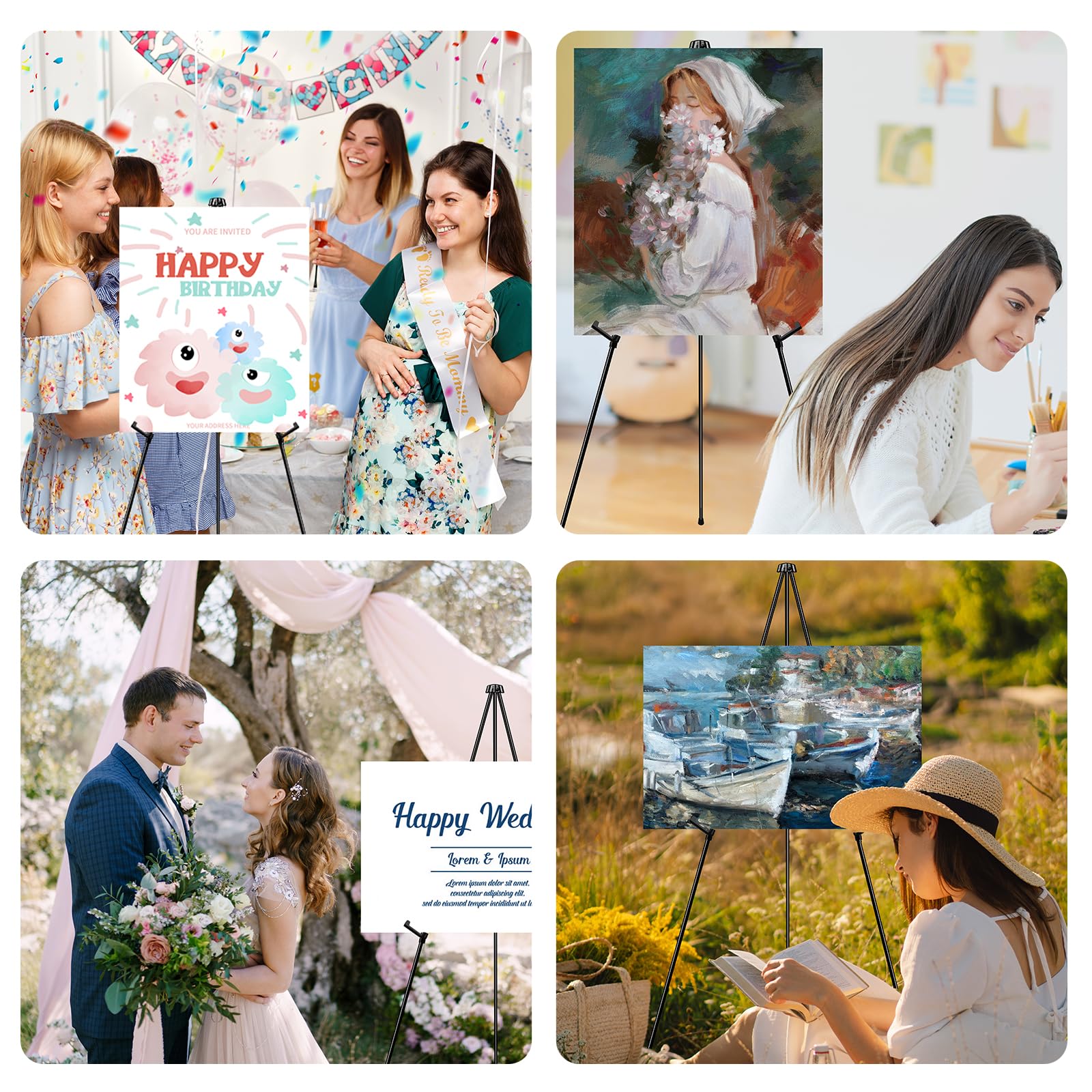 【Easy Install】: Easel stand is foldable, no complicated installation is required, it can be used when opened.for lightweight posters or signage. (Only 63-inch high easel * 8 storage bag * 8, does not include the sign board.)