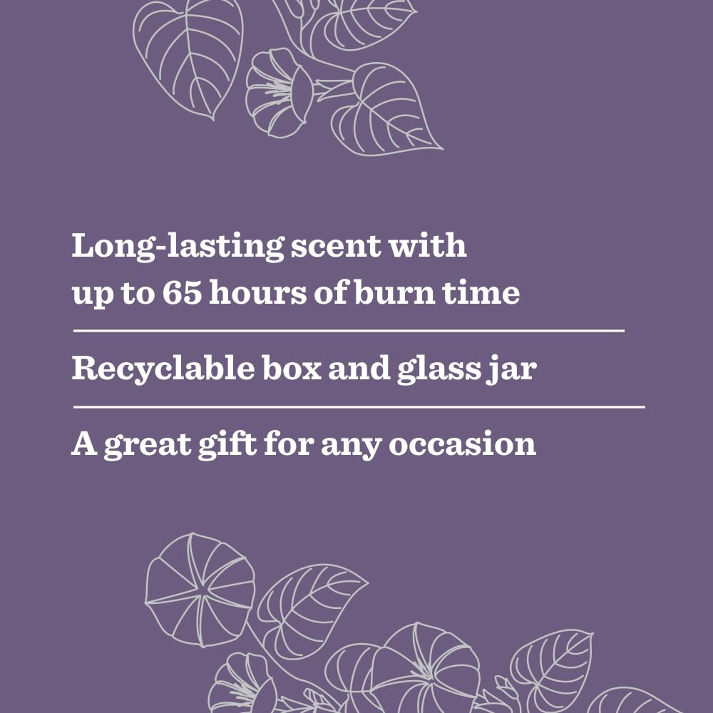 Lead-free, long burning candle wick burns for 65 hours for a long-lasting Moonflower scent.