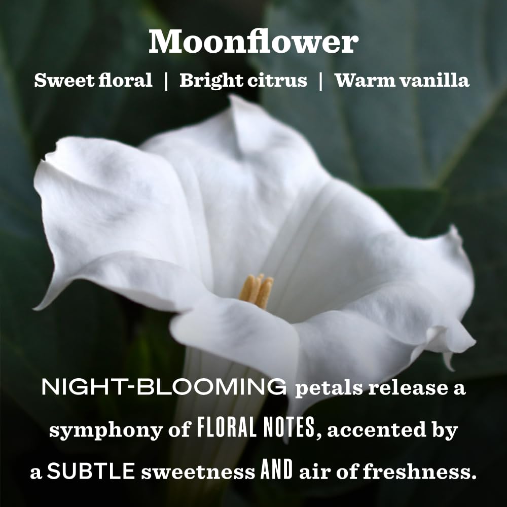 Garden-inspired Moonflower scented candle has a subtle sweetness and air of freshness with floral notes.