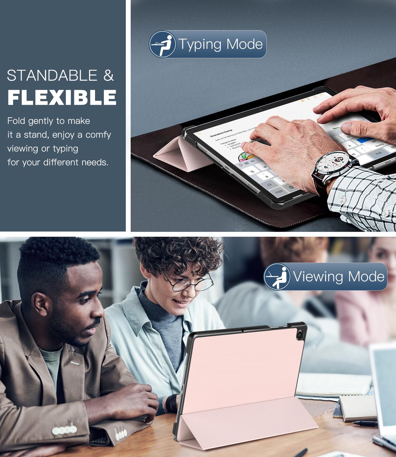 Adjustable Stand Angles: The top of this Galaxy Tab A9 Plus Case folds back to make a stand, which provides a sturdy stand position for both viewing and typing. Free your hands when watching, reading, or writing, a good way to alleviate neck strain