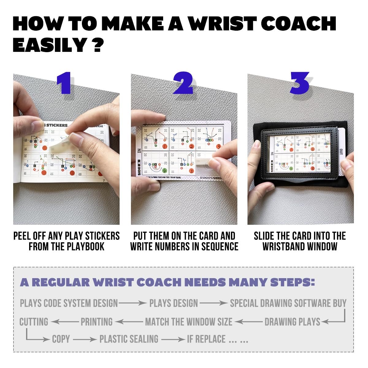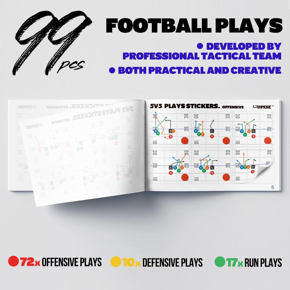 Football Wristbands Playbook -99 Tactics Our professional coaching team has developed 99 commonly used and creative waist flag rugby tactics, including running, passing, and defense. Each tactical sticker has color markings that can quickly distinguish tactical types, and all tactics are made into stickers that can be directly used by removing the desired tactic and pasting it on the tactical card. In addition to 99 tactics, we offer 10+blank stickers for easy creation of the tactics you want features Waterproof: The sticker is made of synthetic material, clear and waterproof, and can be reused Each tactical sticker size: 32 * 28mm Recommended wrist guard window size: 3.8 * 2.3 inches (6 tactics)/5 * 2.3 inches (8 tactics) Material: Paper