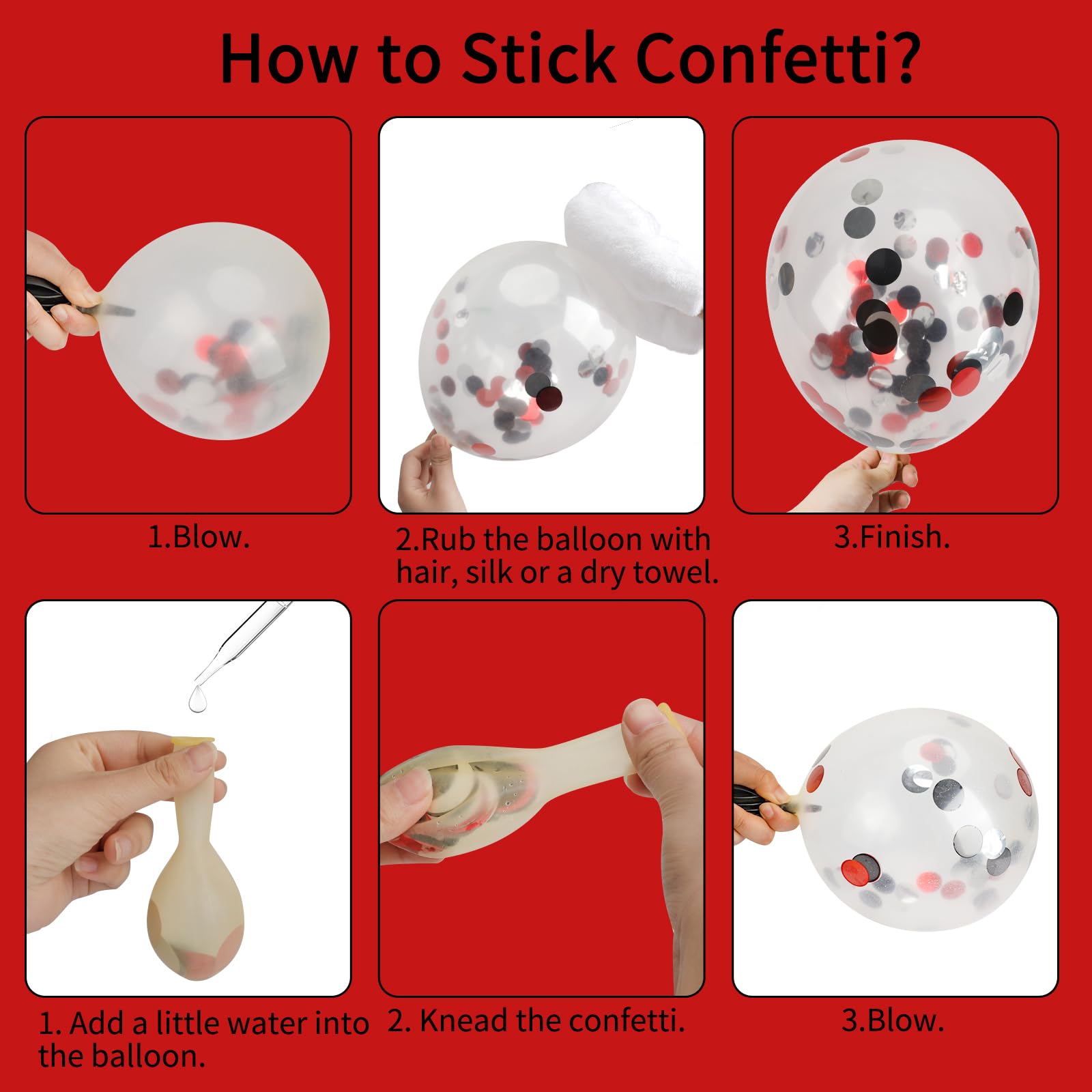 【Regarding confetti balloons】 Since confetti is heavier , confetti will move in the direction of gravity. After being filled with air, shake the confetti balloon and rub it gently on your hair to make the confetti stick to the side of the balloon. The balloon will look more beautiful and will add a lot of fun to the party!