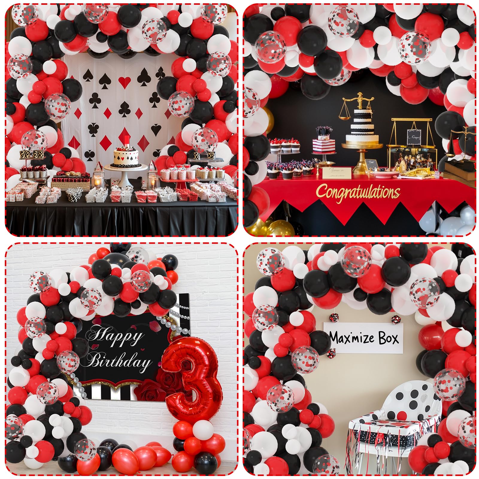 【Widely Use Occasion】 Who doesn't like the red black white balloon garland arch? The classic latex balloons in 3 vibrant colors are perfect for decorating your birthday, circus, baby shower, New Year's Eve, graduation, anniversary, racing car and poker card party decorations.