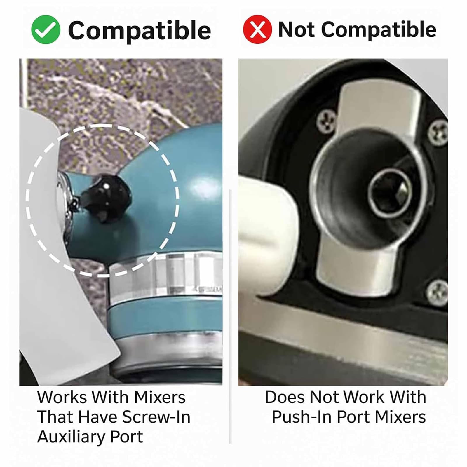 Compatible With KitchenAid Tilt-Head Mixers: Specifically designed for KitchenAid Artisan KSM150 and other 4.5–5Qt tilt-head stand mixers, this funnel locks securely in place. It ensures ingredients go straight into the bowl, allowing you to keep mixing without interruption or unwanted mess