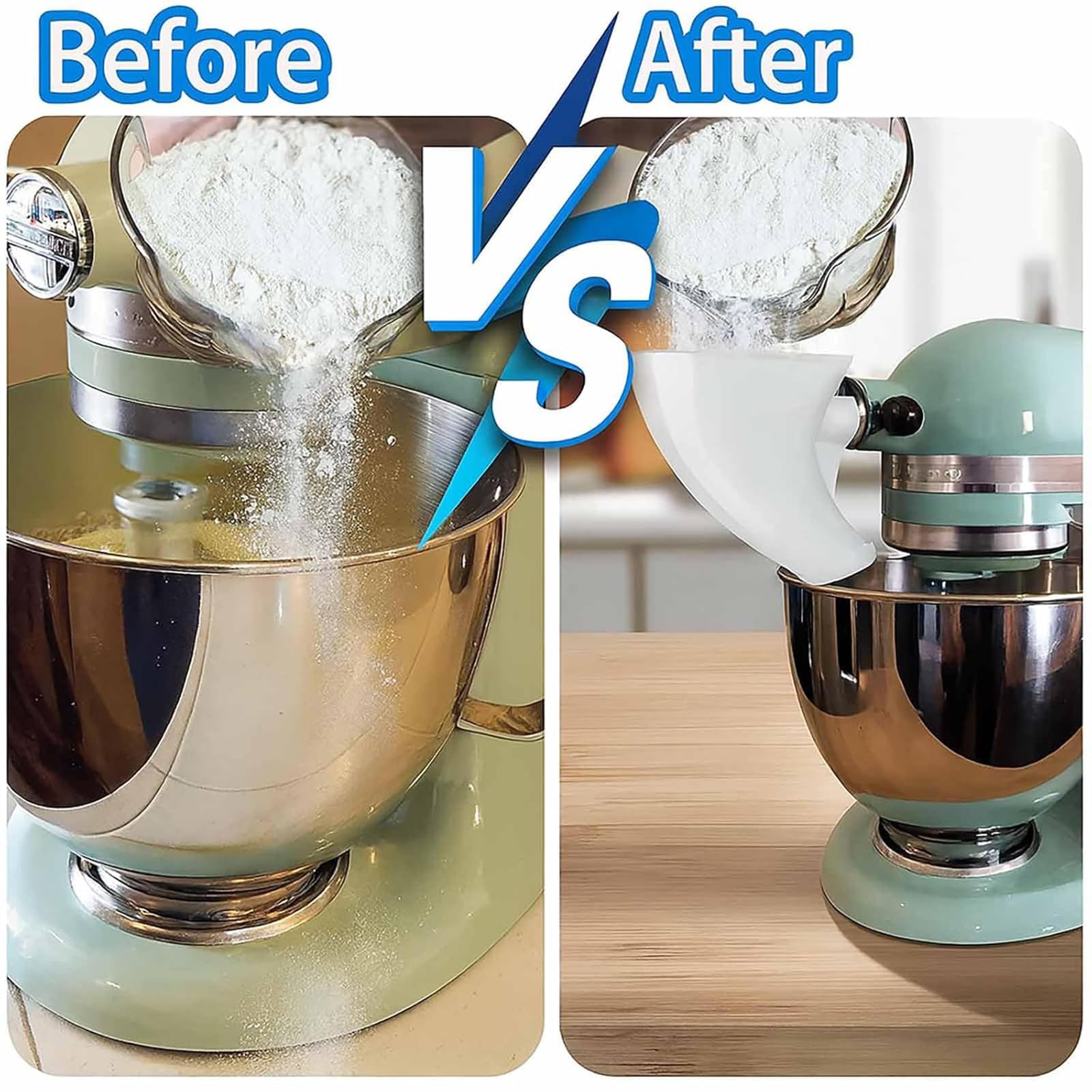 Effortless Pouring, No Mess: Easily add flour, sugar, or liquid ingredients directly into your mixer bowl without splashes or spills. This funnel guides everything neatly inside, keeping countertops spotless and helping you enjoy stress-free baking preparation every time