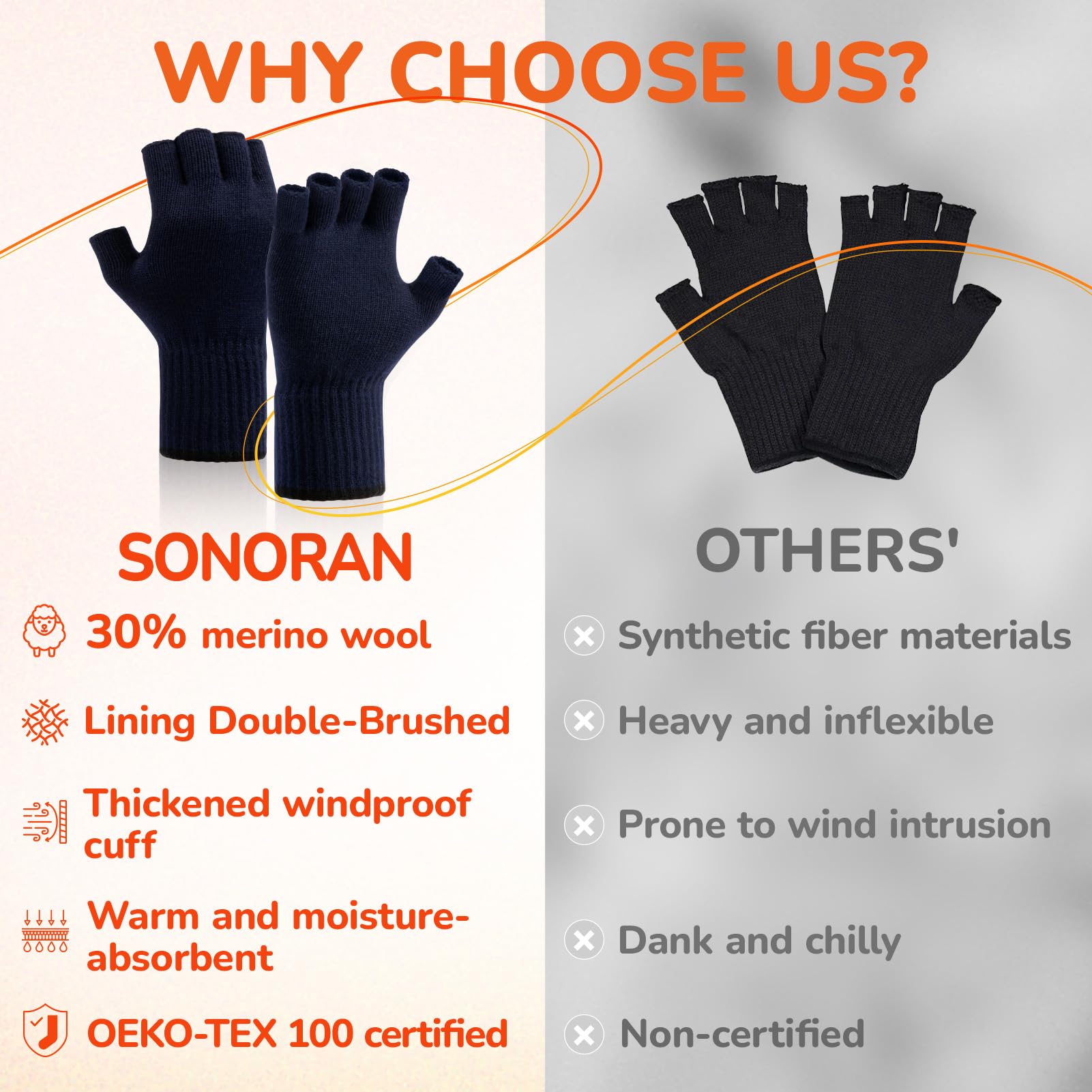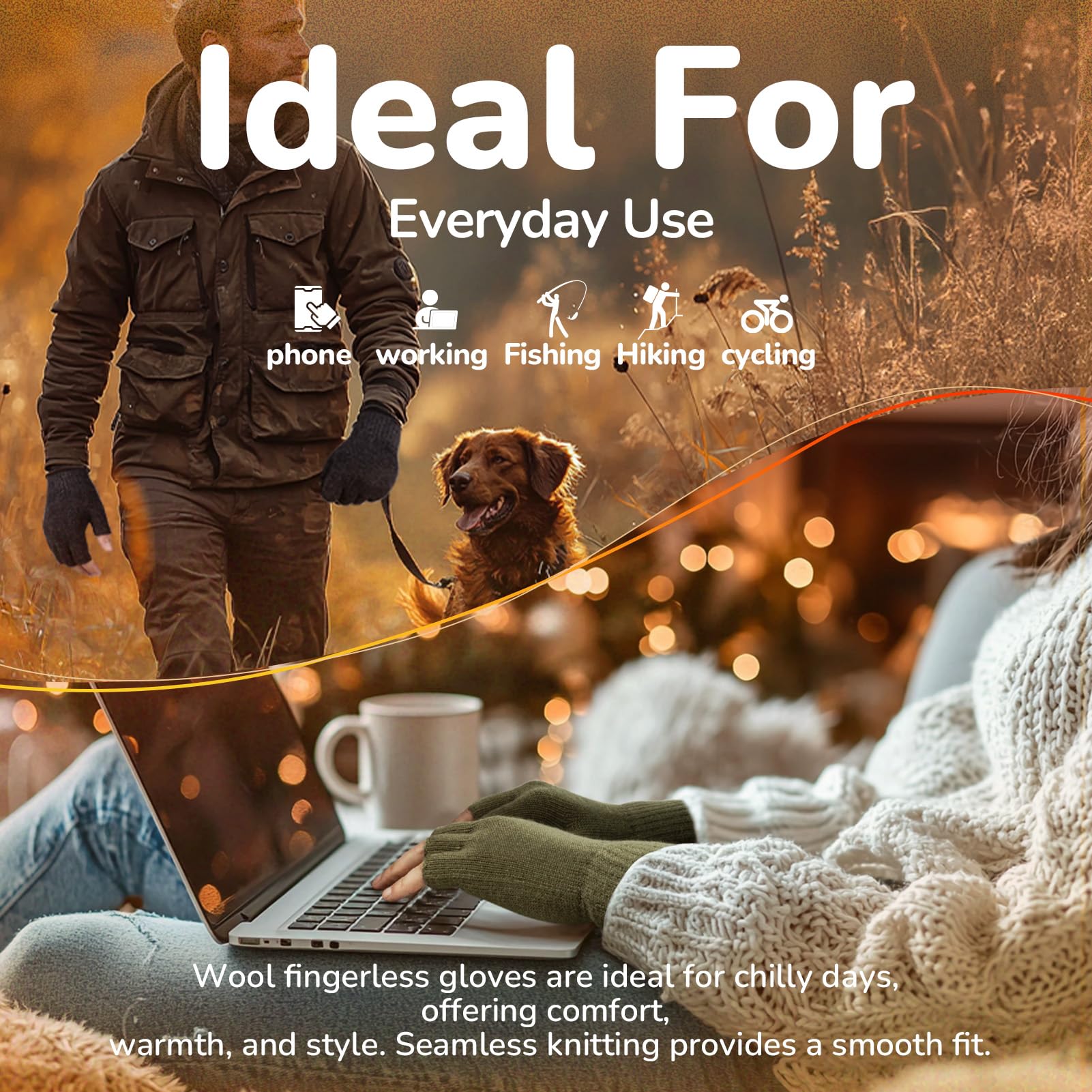 Fingerless Design: Our half-finger gloves offer superb flexibility for unrestricted finger movement, allowing for precise operations such as typing, using touchscreen devices, fishing, or handling small tools. The seamless knit construction makes them easy to layer.