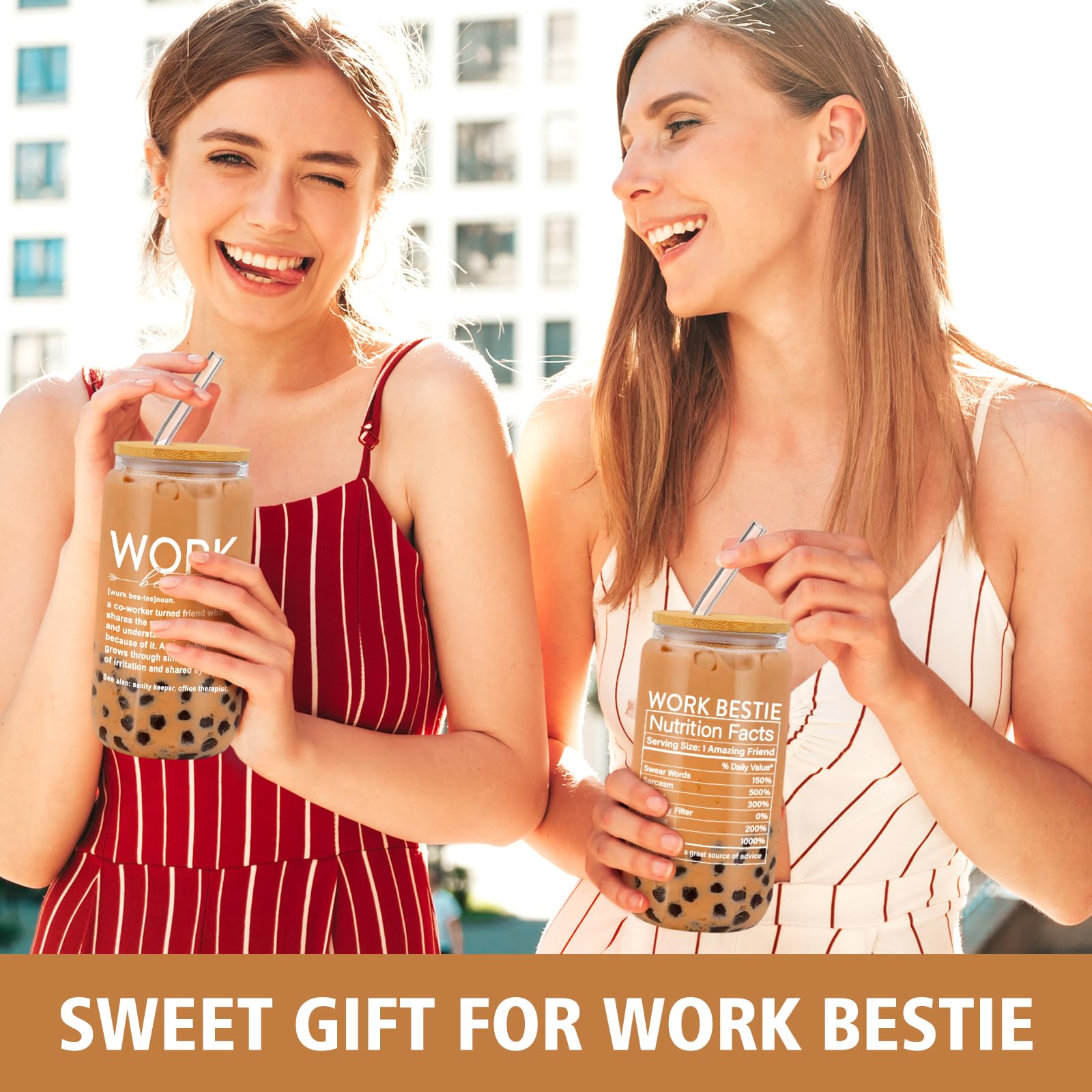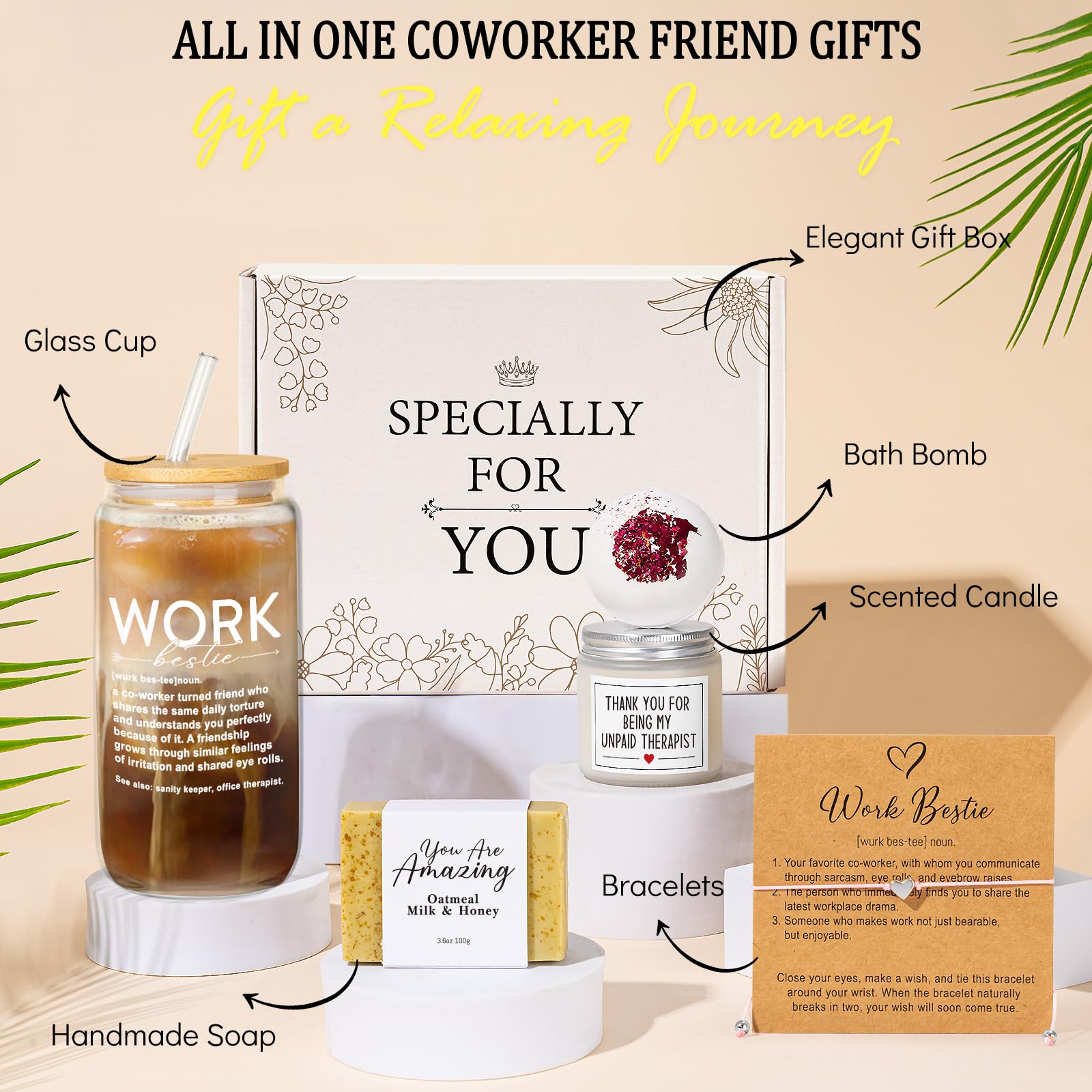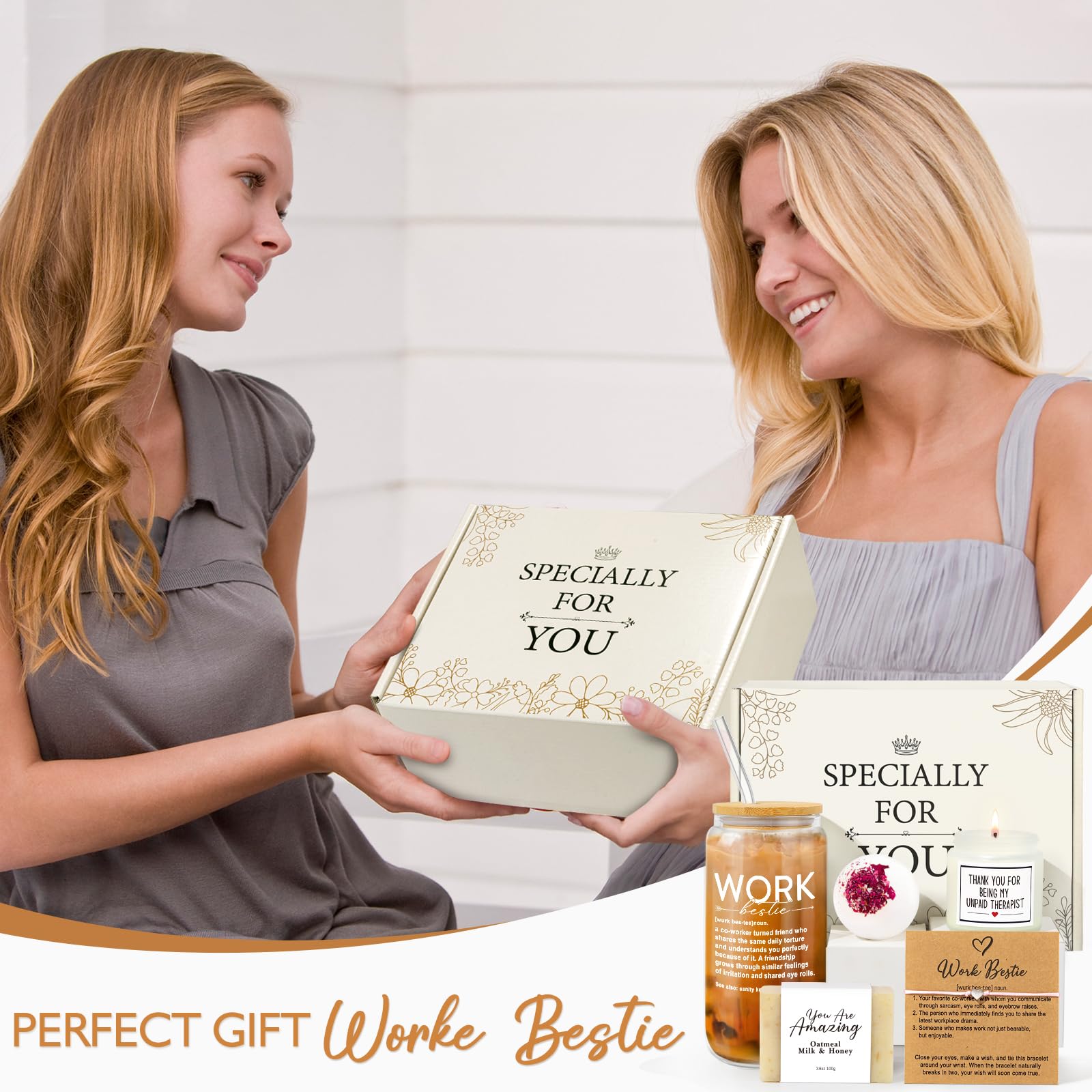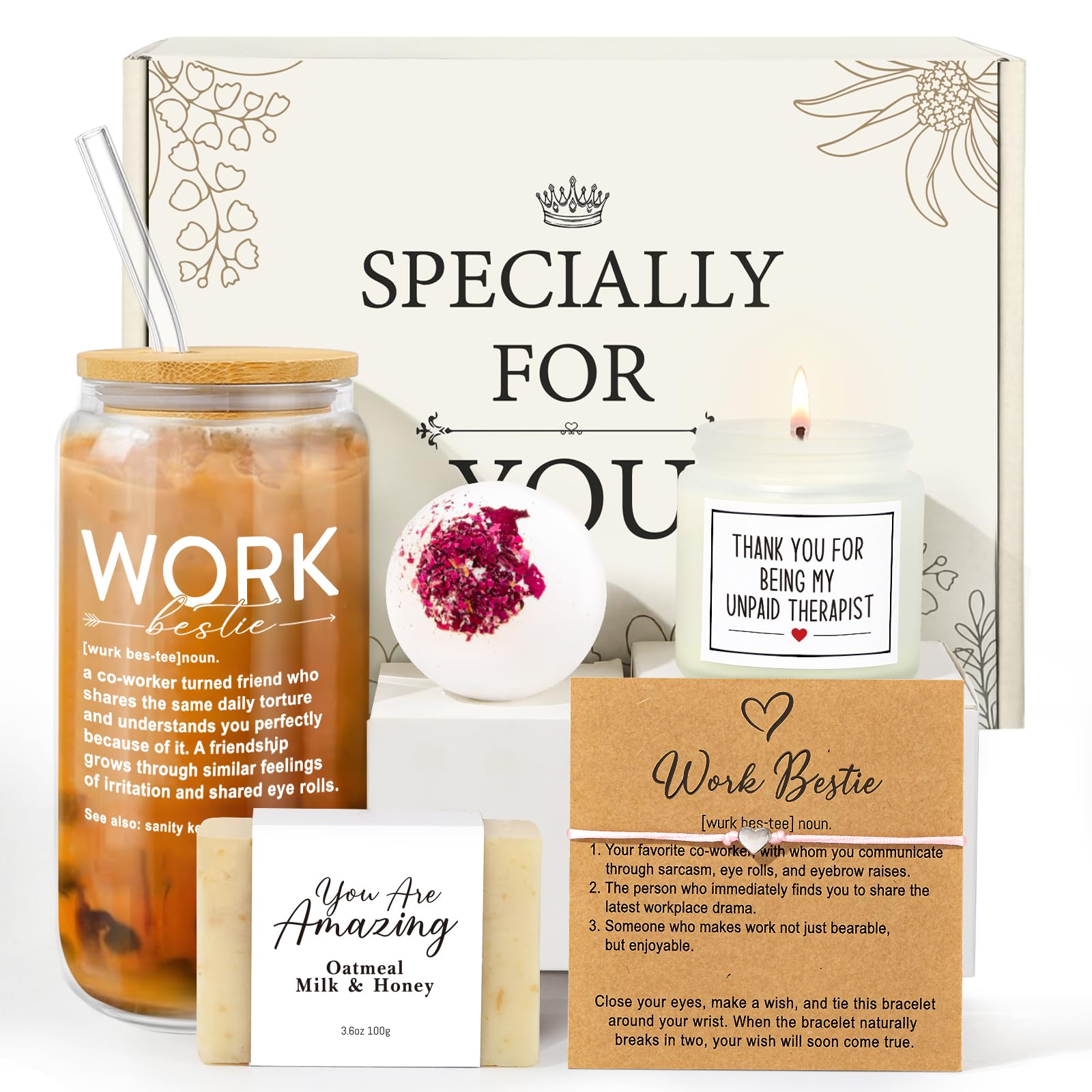 Work Besties Gifts for Women, Work Bestie Gift, Coworker Friend Gift for Women with Work Besties Coffee Glass, Wish Bracelet, Spa Gifts, Coworker Leaving Gifts