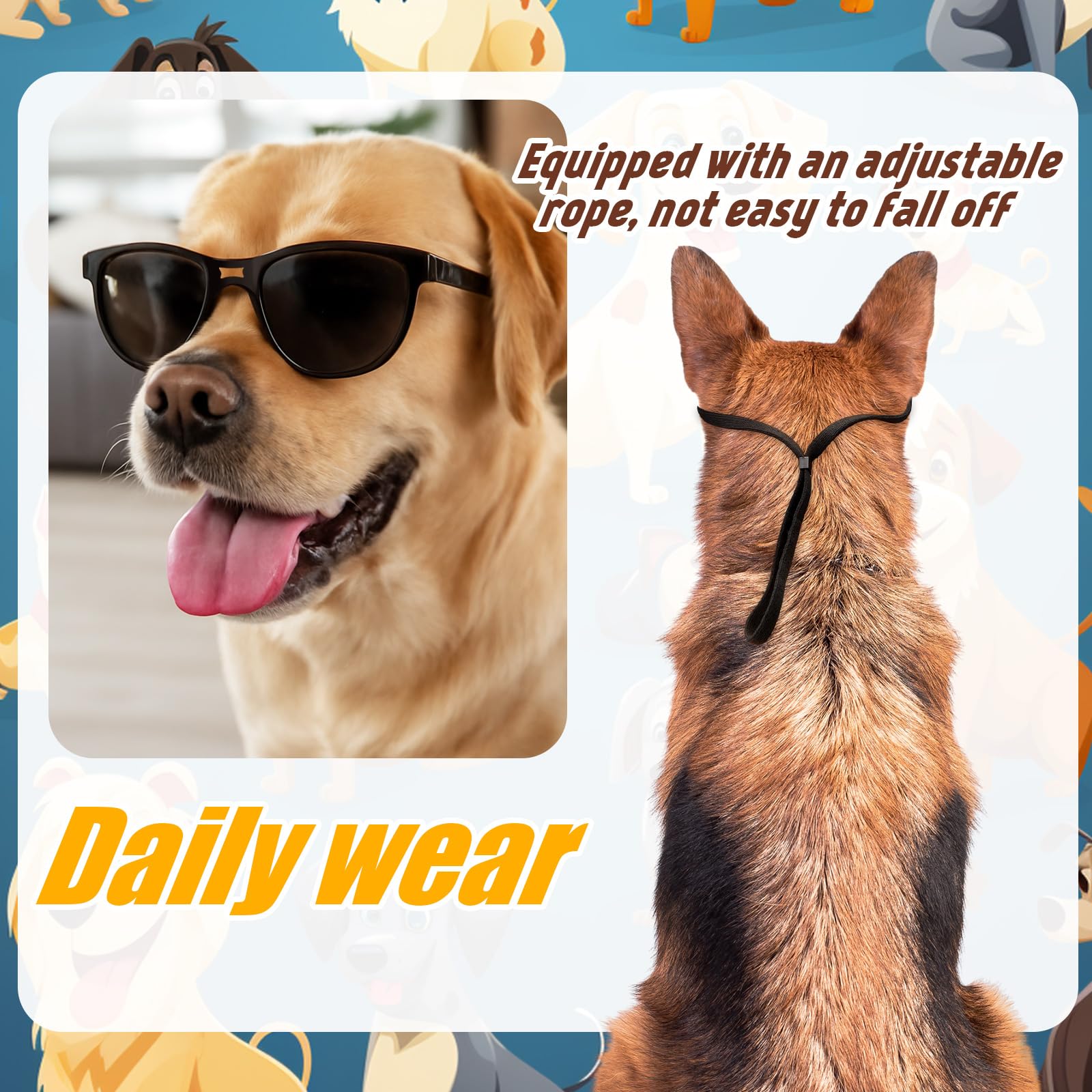 Adjustable Glasses Rope Design: included with each pair of dog glasses for medium dogs and larger breeds is a black adjustable glasses rope, measuring 56 cm in total length; This feature ensures your dog sunglasses remain securely in place, allowing your pet to run and play; Warm Tips: because the adjustable rope is detachable, please pay attention to the behavior of your pet at all times during use, so that it will not be bitten off or swallowed by your pet