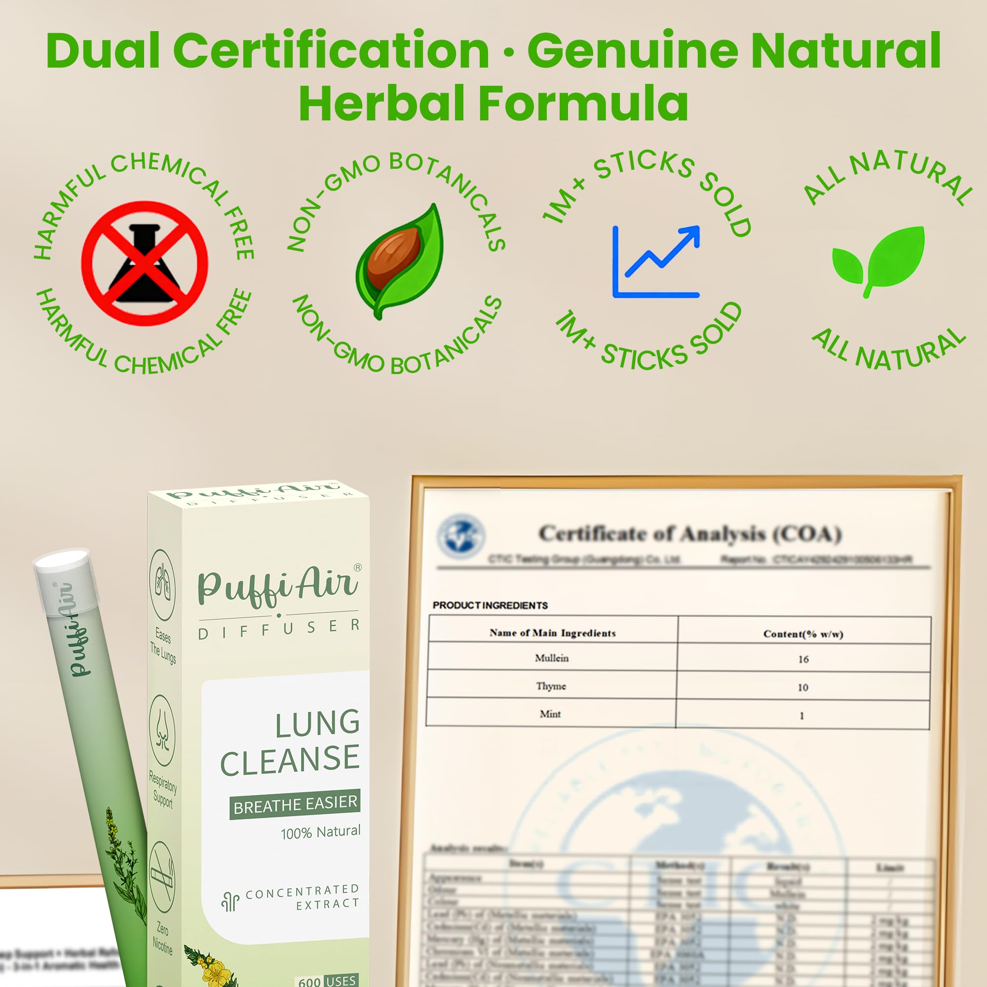 【Pure Natural Ingredients】Lung detox inhaler contains extracts of mullein, thyme and peppermint and works tirelessly to remove impurities and toxins that may have accumulated in the lungs, ensuring a healthier breathing experience.