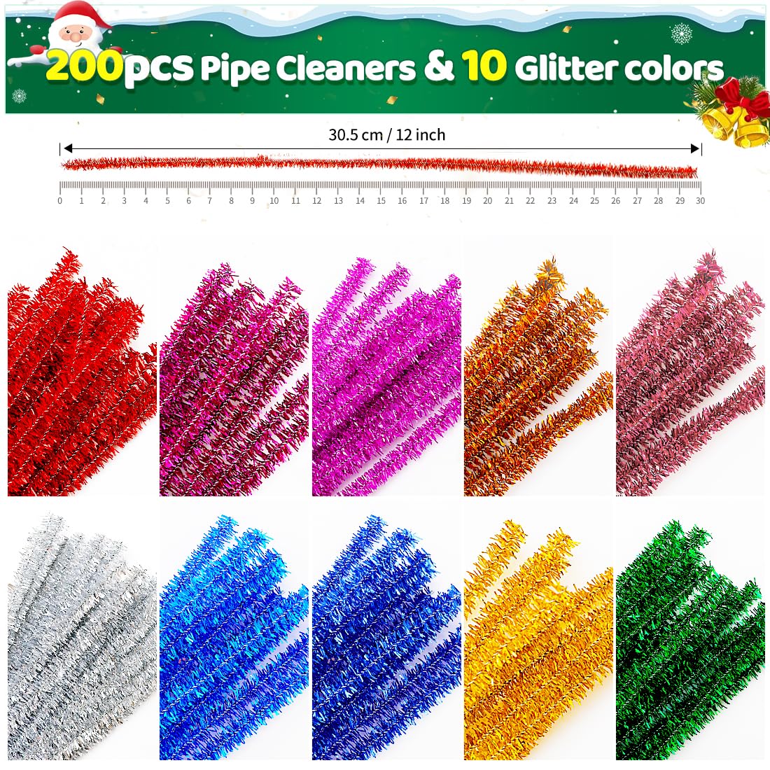 200pcs in 10 glitter colors, Pipe Cleaners,Glitter Pipe Cleaners, Chenille Stems, Pipe Cleaners for Crafts, Pipe Cleaner Crafts, Art and Craft Supplies.