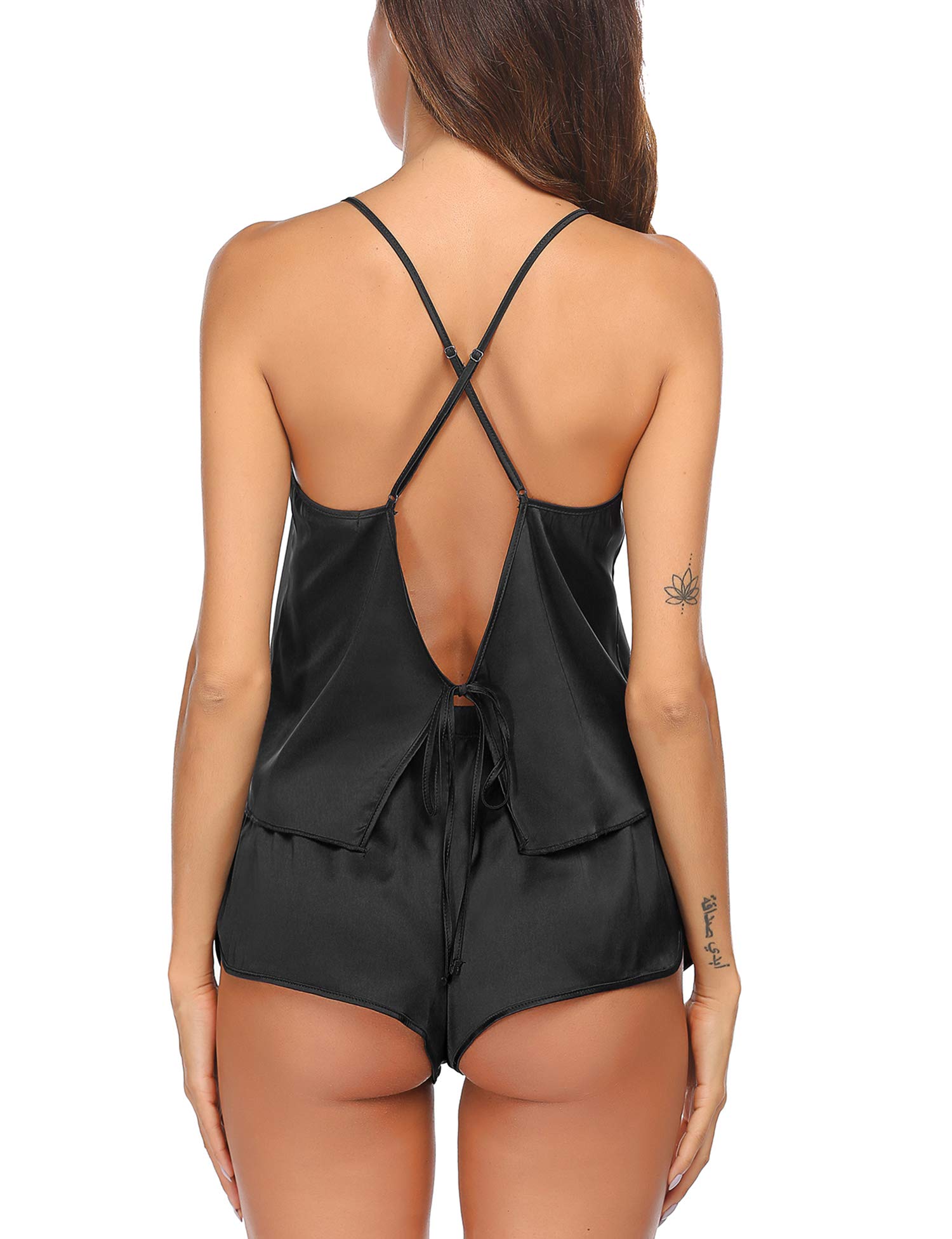 DESIGN&OCCASION: The soft lingerie set featuring adjustable cross shoulder straps. Fine condole belt, leak the back of half, elastic waistbandsatin slit hot shorts, the cute and soft 2-piece cami sleep sets for women make your family wander more comfortable and elegant