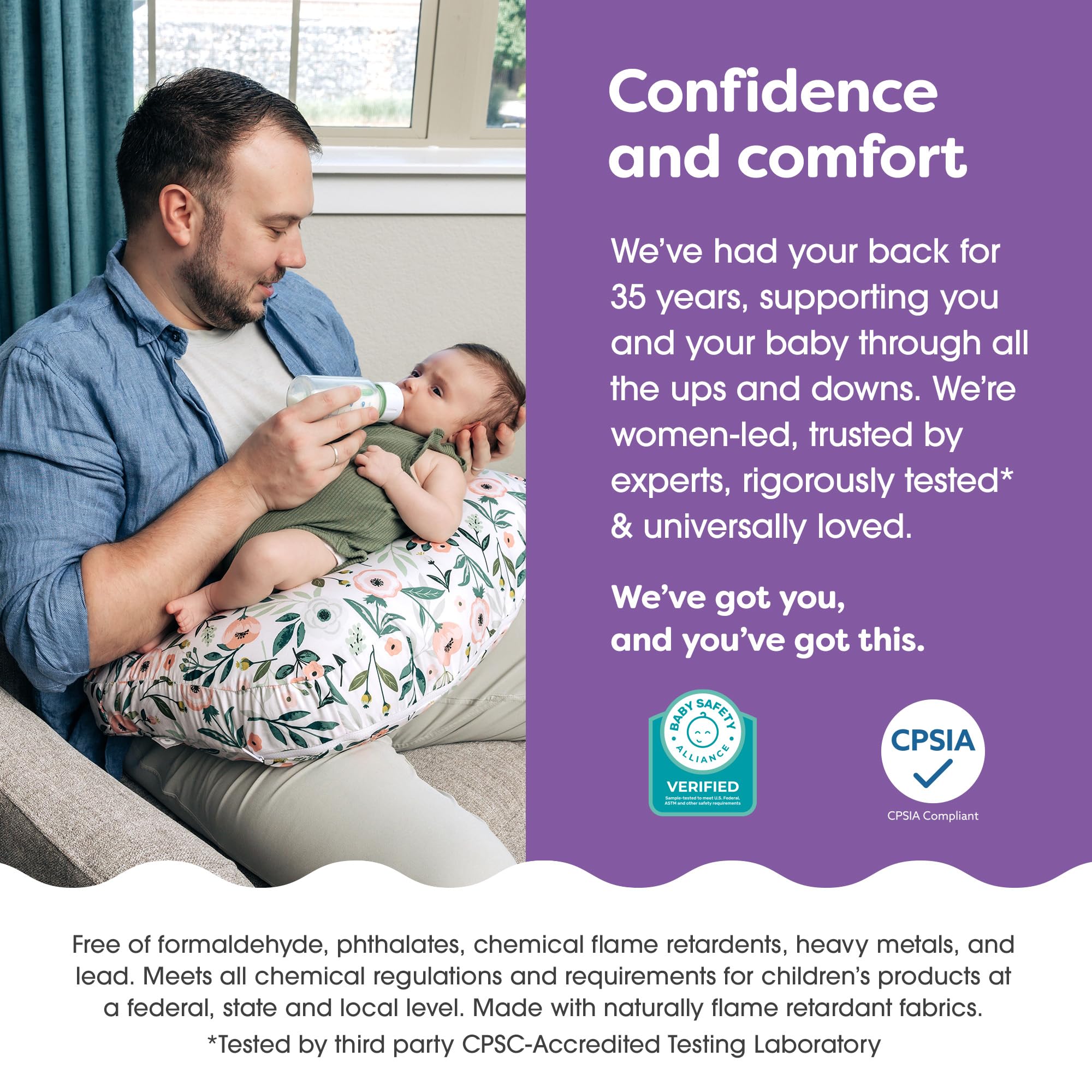 35 Years of Confidence: Better connecting babies and moms since 1989 with breastfeeding pillows, baby carriers and other baby essentials so you can worry less and enjoy more; The first brand verified by the Baby Safety Alliance in the Nursing Pillow category for meeting the highest standards in safety, performance and quality; Meets and exceeds standards for ASTM F3669 Consumer Safety Specification for Nursing Pillows and 16 CFR 1242 safety standard for nursing pillows, so you can have peace of mind