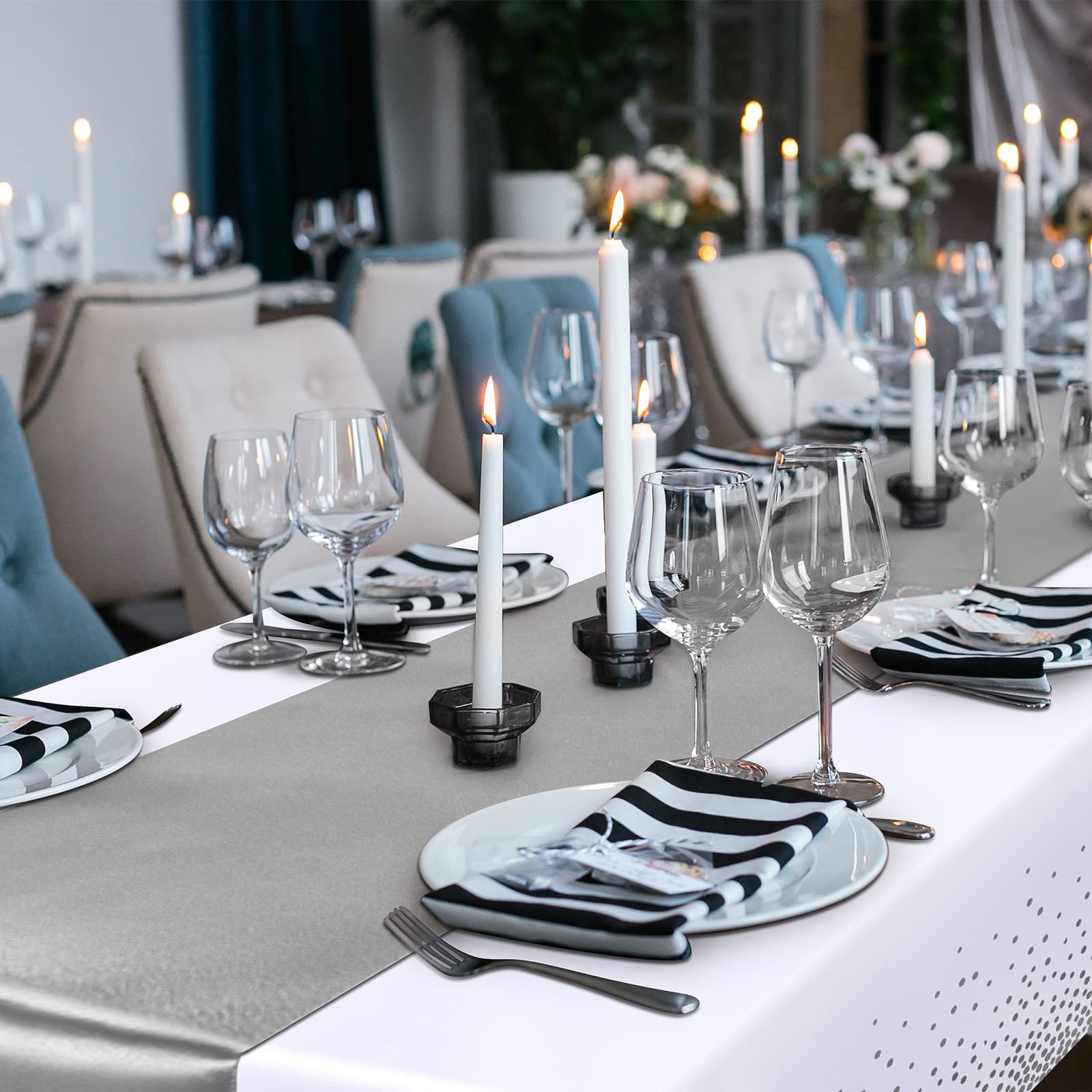 Quality Tablecloth Set: the disposable waterproof table covers are made of PEVA plastic, waterproof and oil proof, soft and exquisite, the table runners are made of satin polyester material, can be ironed, polished edges and comfortable touch, leaving a pleasant user experience