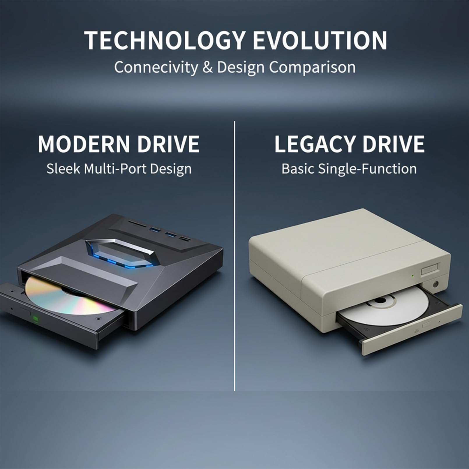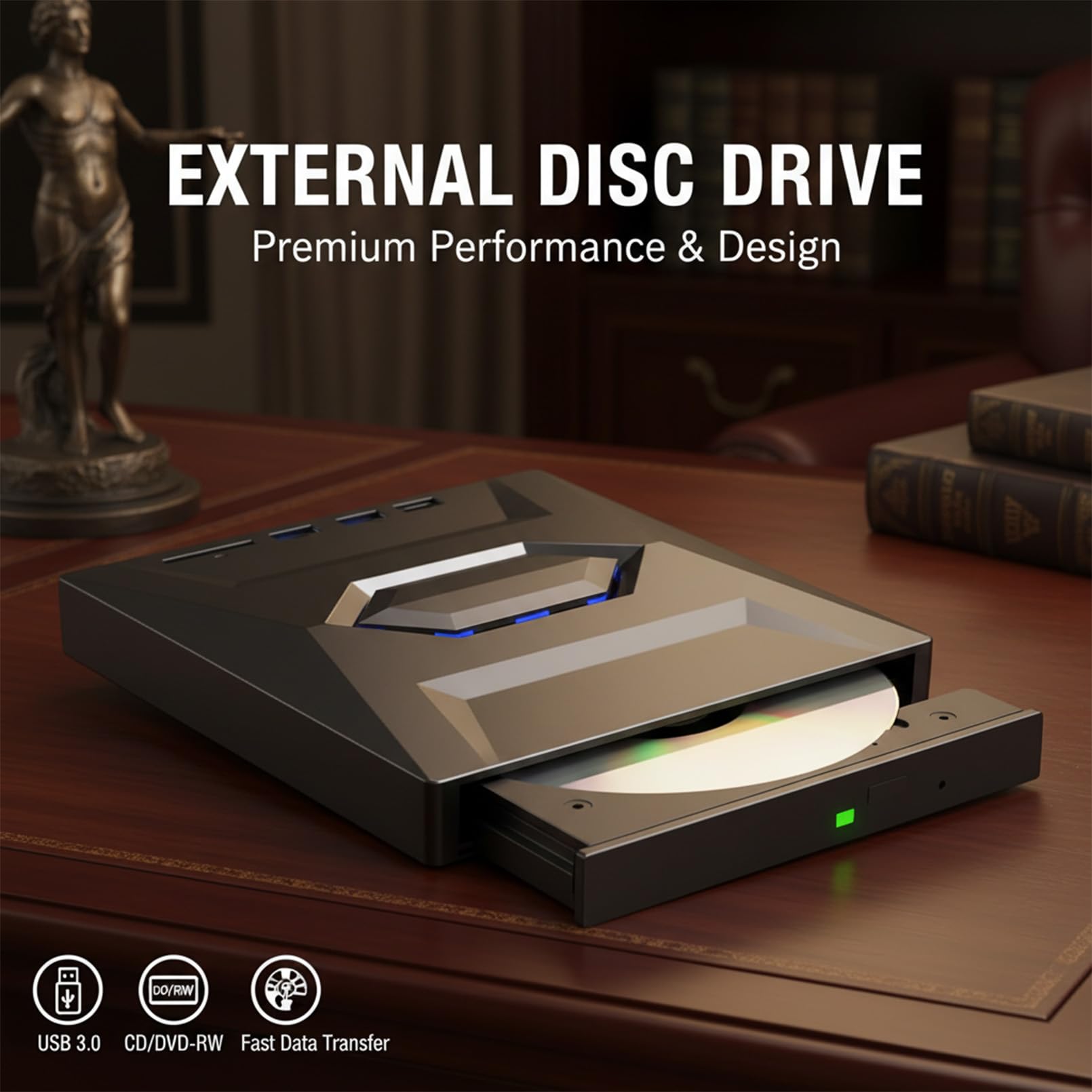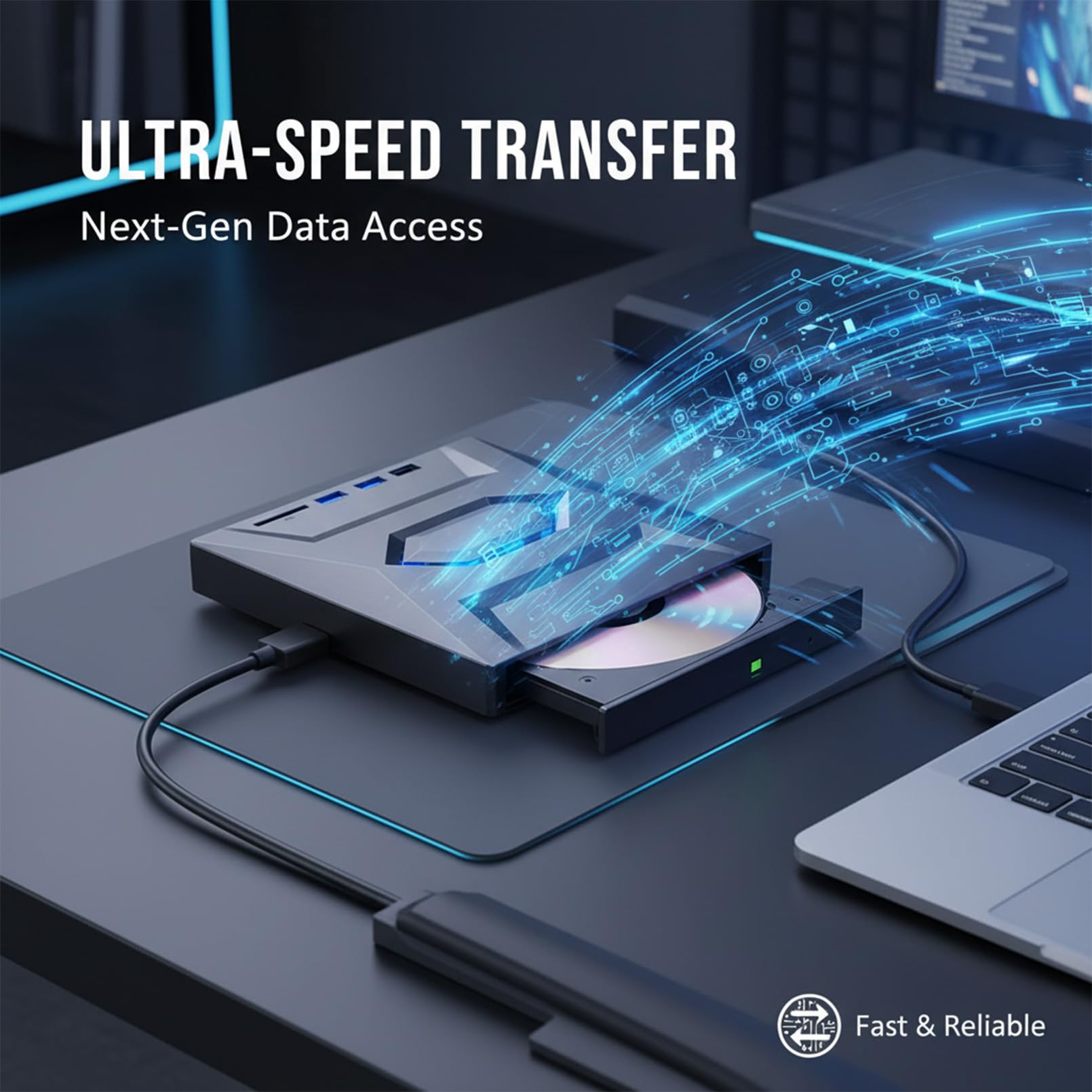 【Ultra-Slim Portable Design】 Designed for maximum mobility, its lightweight and compact form factor slides easily into a laptop bag or backpack. The anti-slip base keeps it secure on any desk, making it the perfect travel companion for professionals, students, and home offices needing reliable disc access on the go