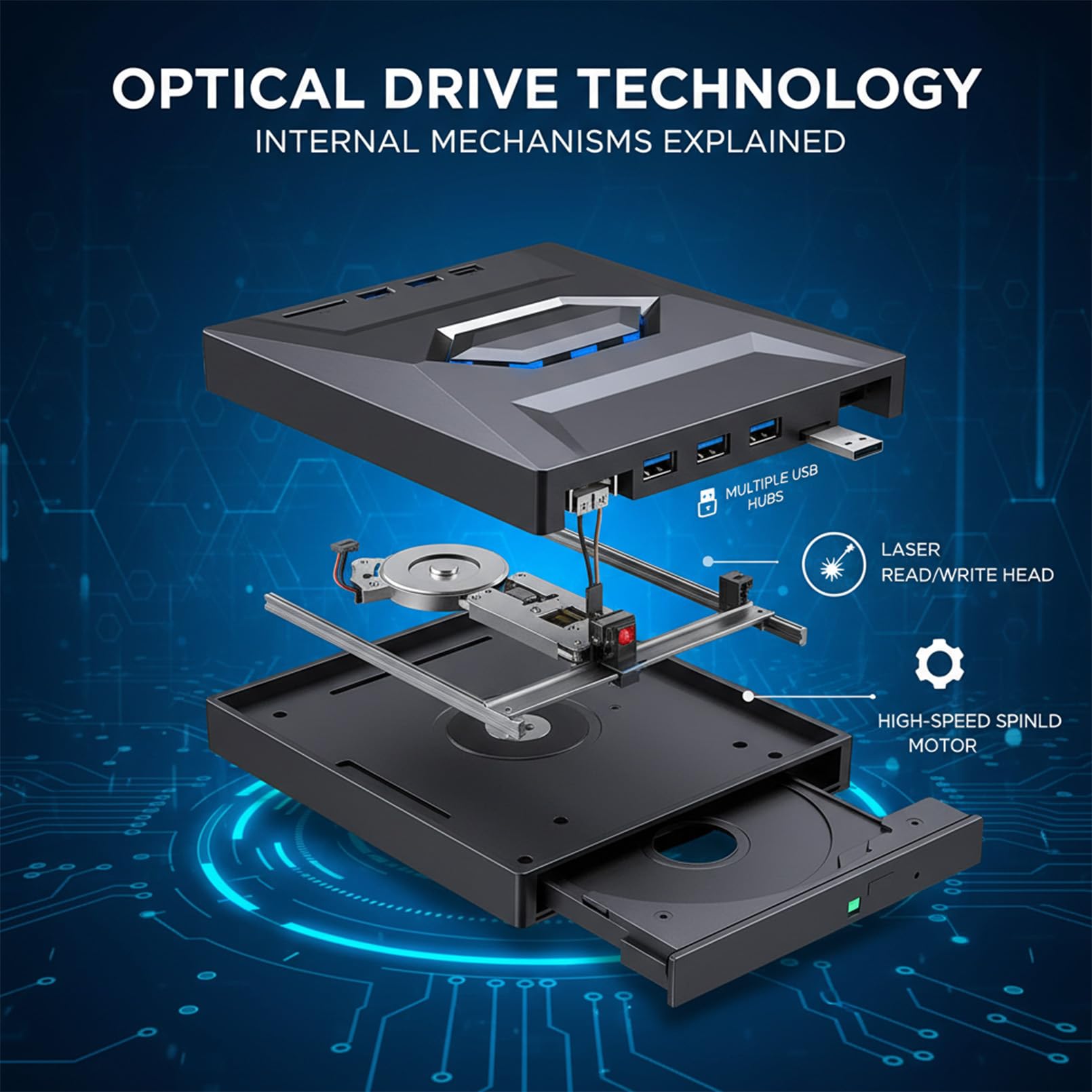 【5-in-1 Expansion & Data Hub】 Beyond being a high-performance Blu-ray and DVD player, this external drive functions as a versatile port multiplier. It features built-in SD/TF card slots for instant photo and video file transfers, plus 2 additional USB-A ports for connecting a mouse, flash drive, or other peripherals—ideal for slim laptops with limited ports .