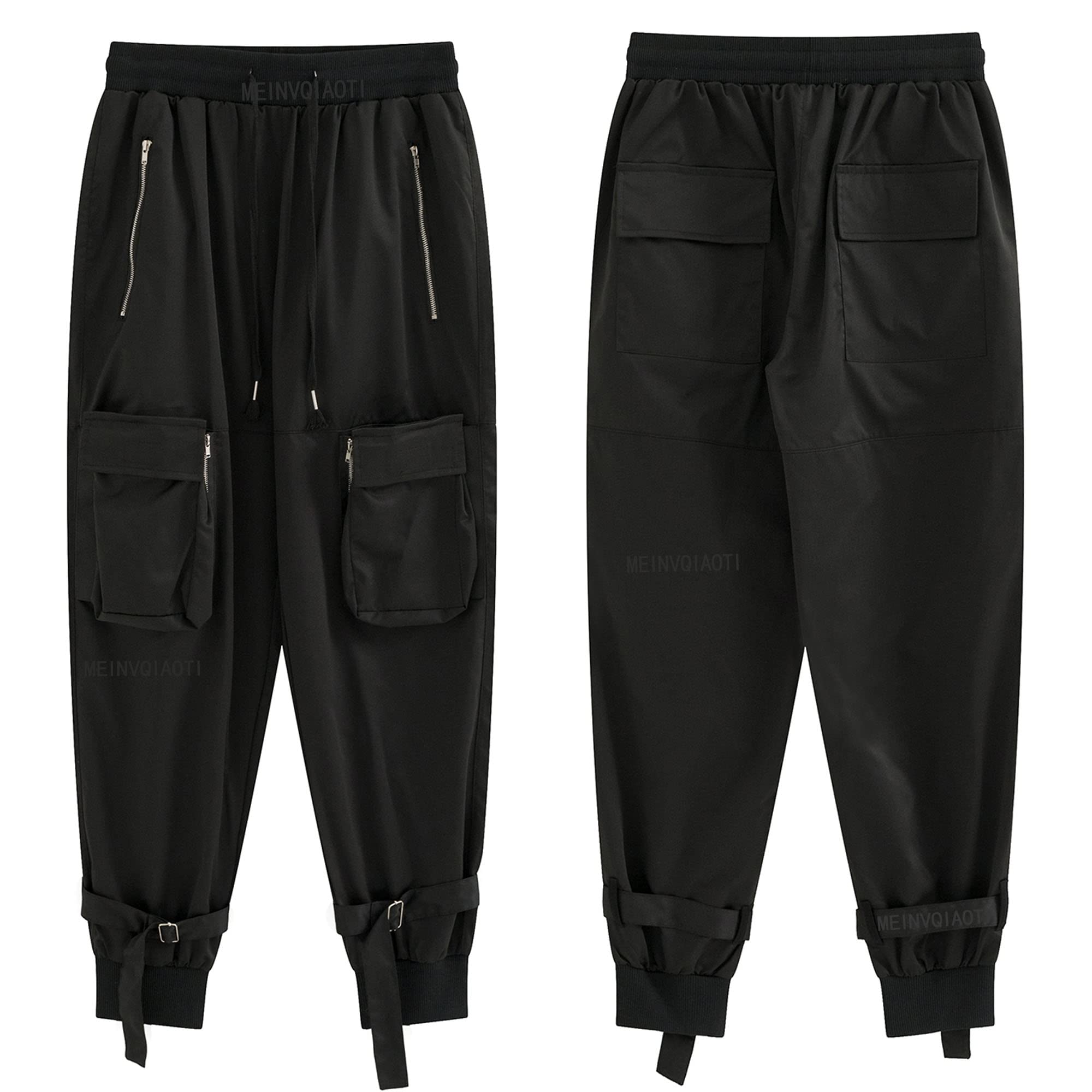 MEINVQIAOTI Black Cargo Pants Women Loose Chained Pants Multi-Pocket Multi-Zip Punk Goth Pants