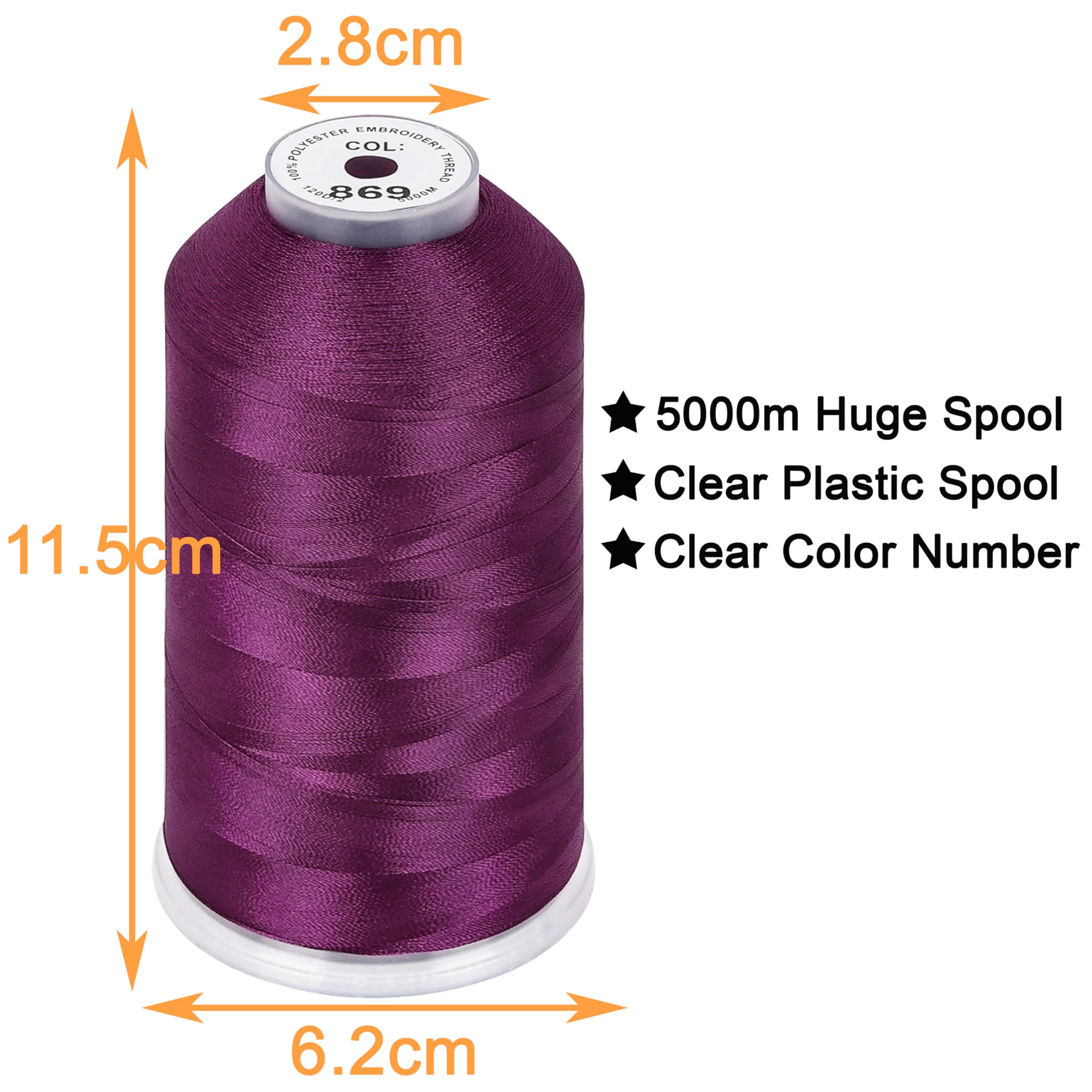 ★★ Ideal Weight and Huge Spool - Each Spool is 40 W.T. (120D/2) in thickness and 5000M (5500Y) in length, which makes these spools of polyester embroidery machine thread ideal for All Embroidery Machines including Home based, Semi-industrial, Industrial and Commercial Embroidery Machines. (Note: home based machine users MUST use an upright thread stand/holder to help feeding our 5000m embroidery threads to your machine properly!)