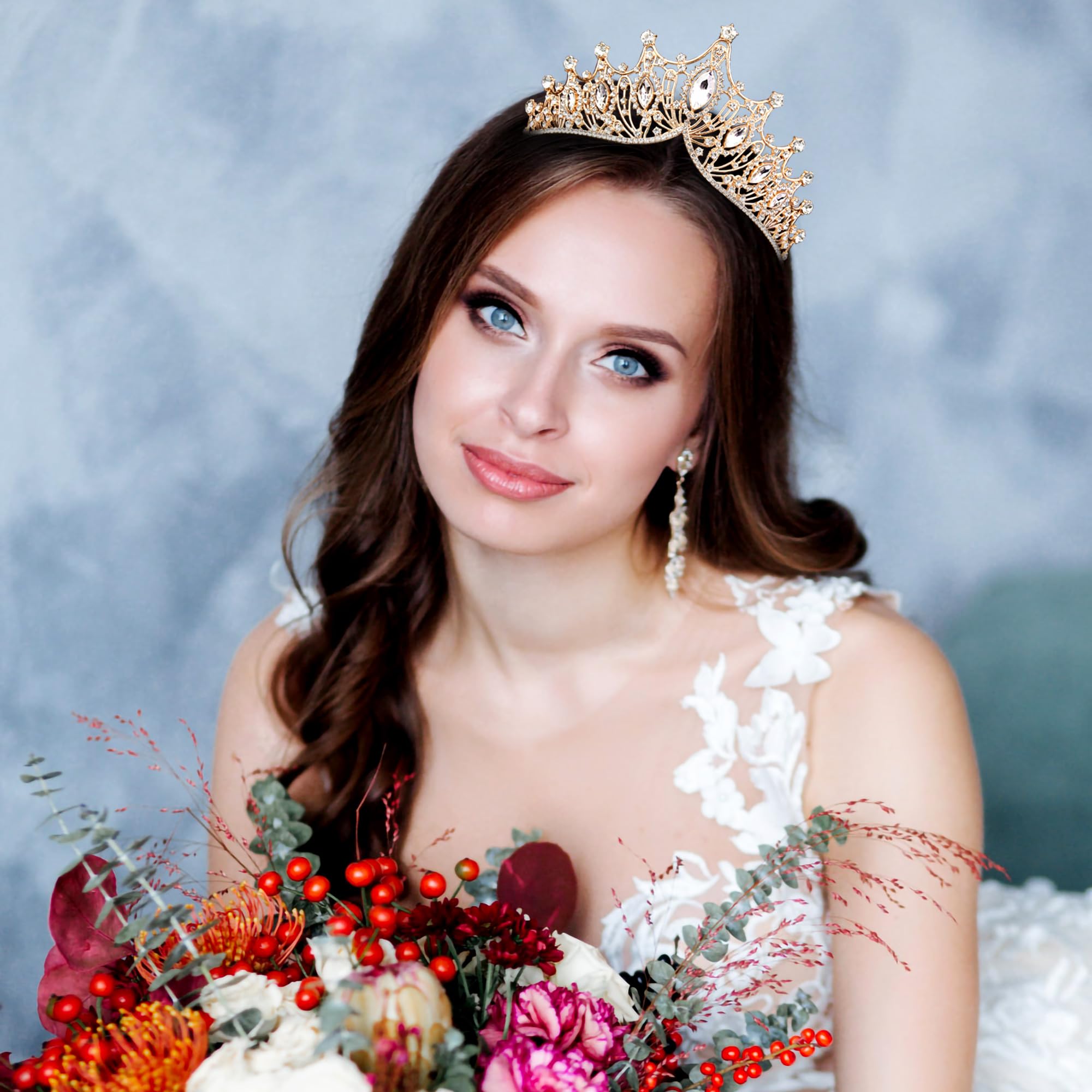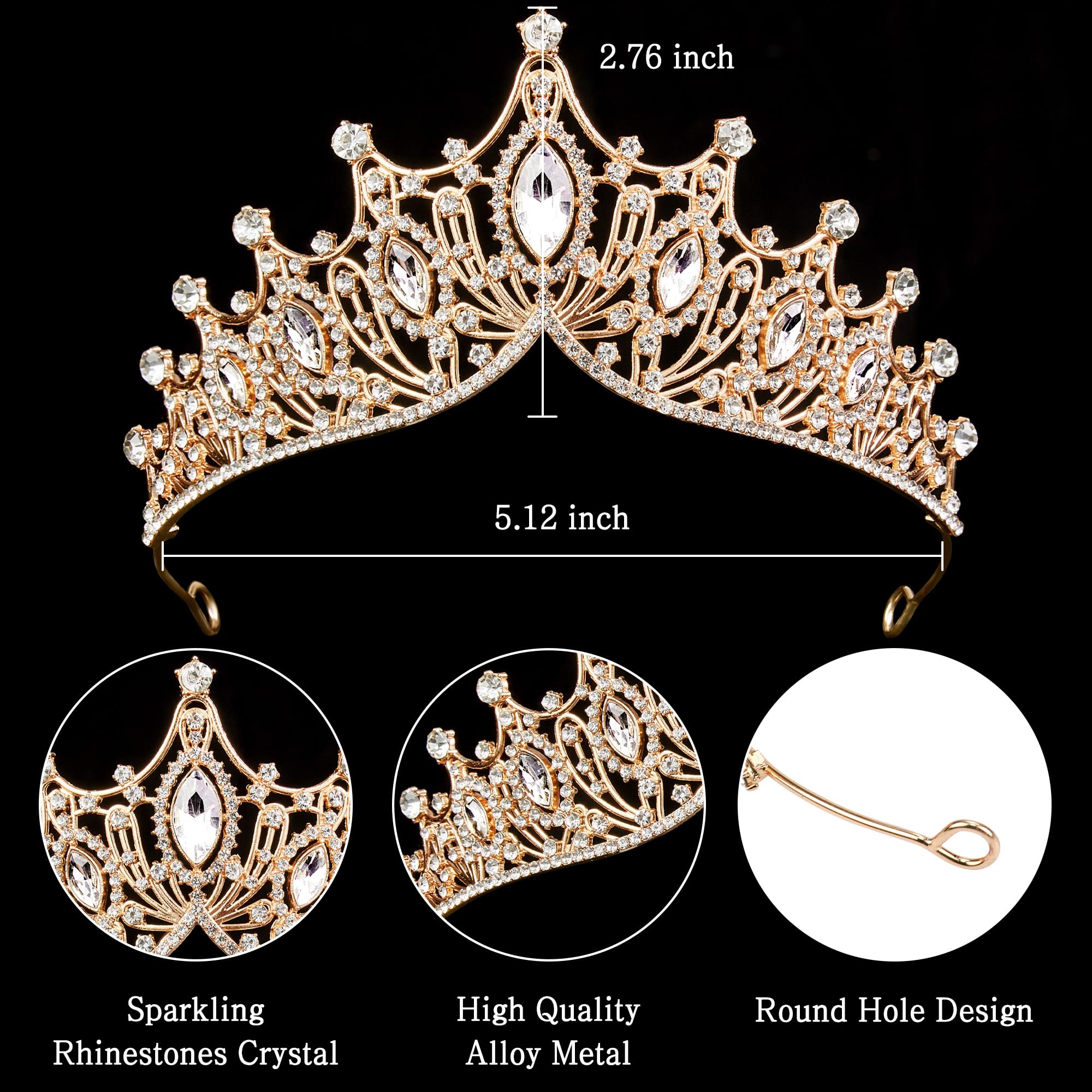 One Size Fits Most: Our crown is gold and measures approximately 2.76 inches (7cm) tall and 5.12 inches (13cm) in diameter. Specially designed to fit women's head size, suitable for adults, perfectly fit your charming hairstyle and face shape.