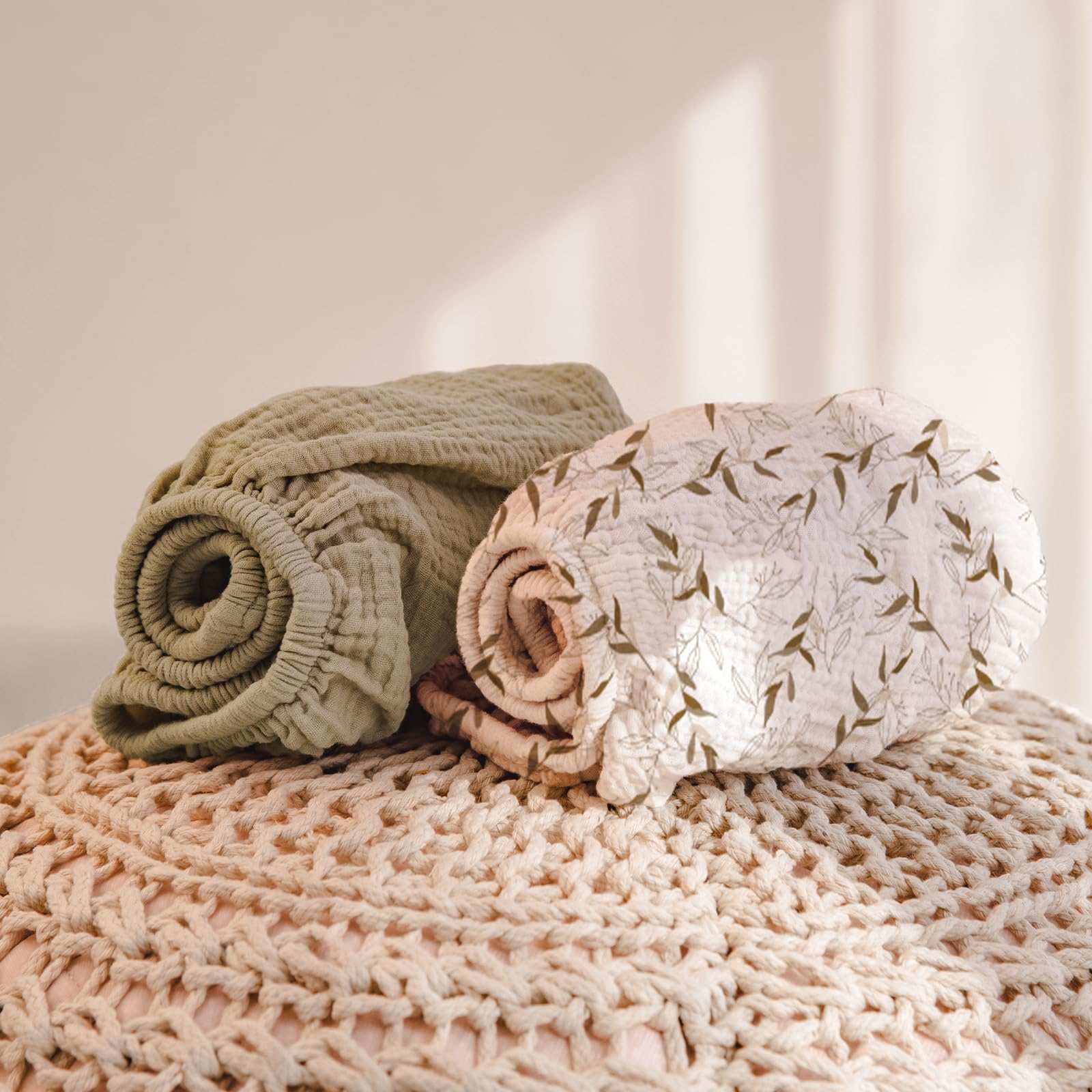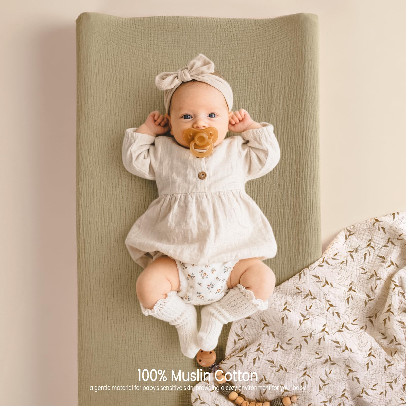 Soft & Breathable Muslin Cotton: Give your baby the comfort they deserve with our breathable muslin cotton changing pad cover. Its lightweight and ultra soft surface feels gentle against your baby’s sensitive skin, while the breathable weave promotes airflow to keep your little one cool and content during changes.