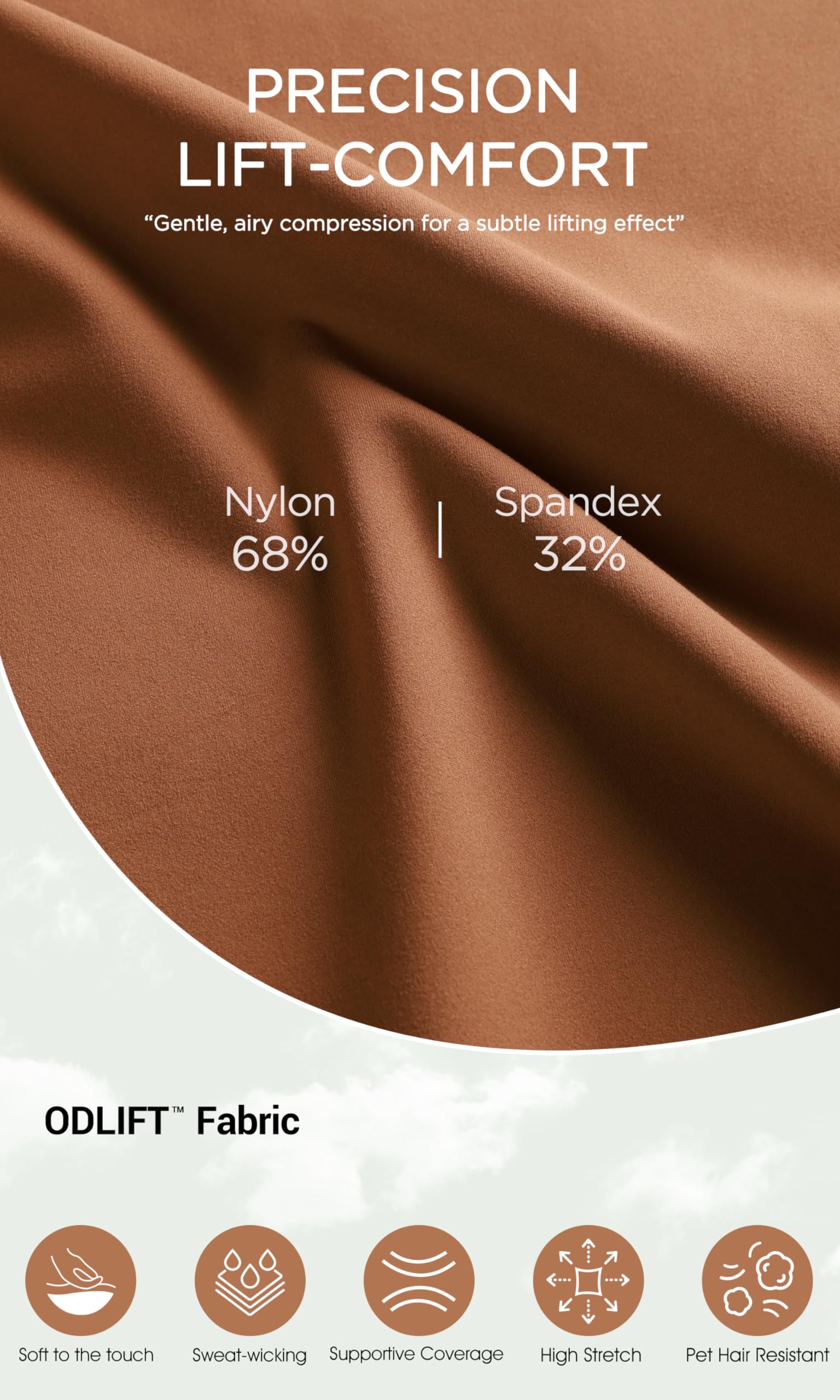 High-compression yet breathable fabric with a smooth, soft-touch finish for all-day comfort and support.