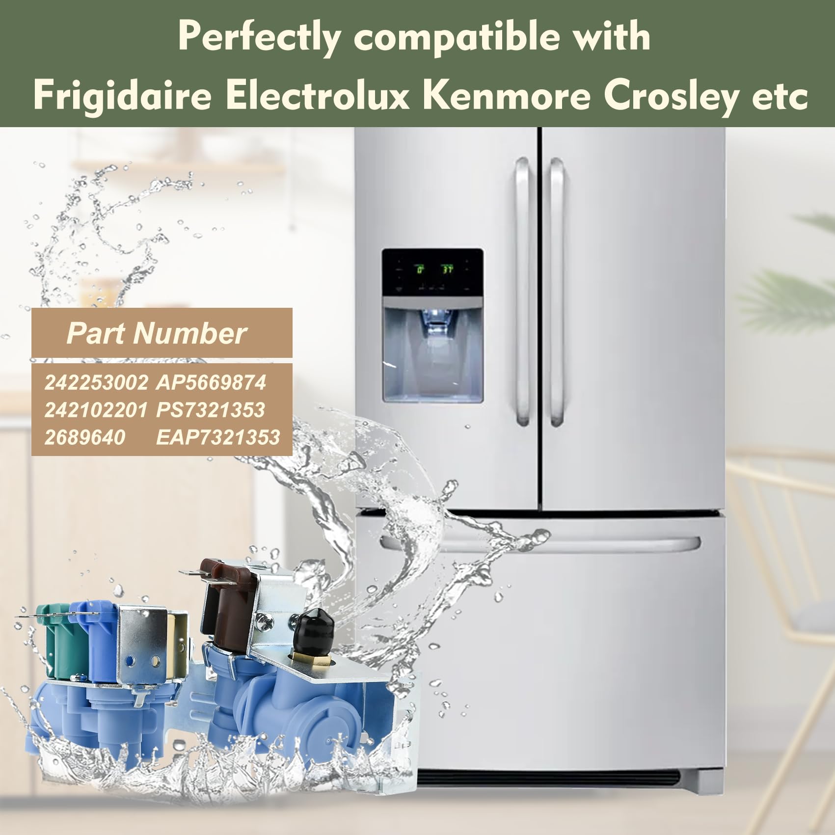 242253002 242102201 Refrigerator Water Inlet Valve Compatible with frigidaire electrolux kenmore crosley etc Refrigerators (Some Models), Replace Number: 2689640, AP5669874, PS7321353, EAP7321353 etc