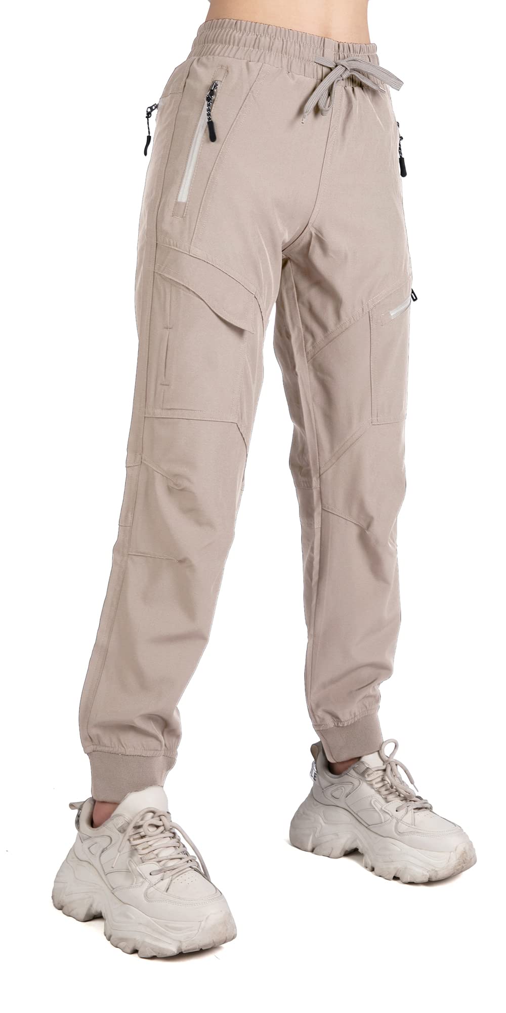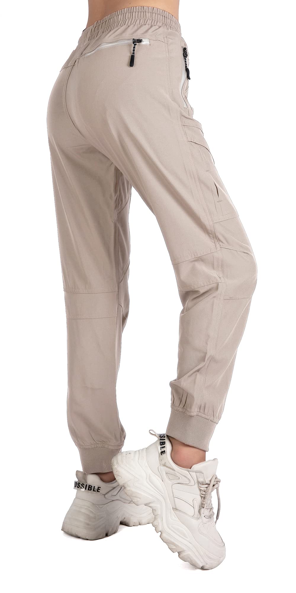 Mid-rise, elastic wasitband with drawstring, stretchy ankle cuffs