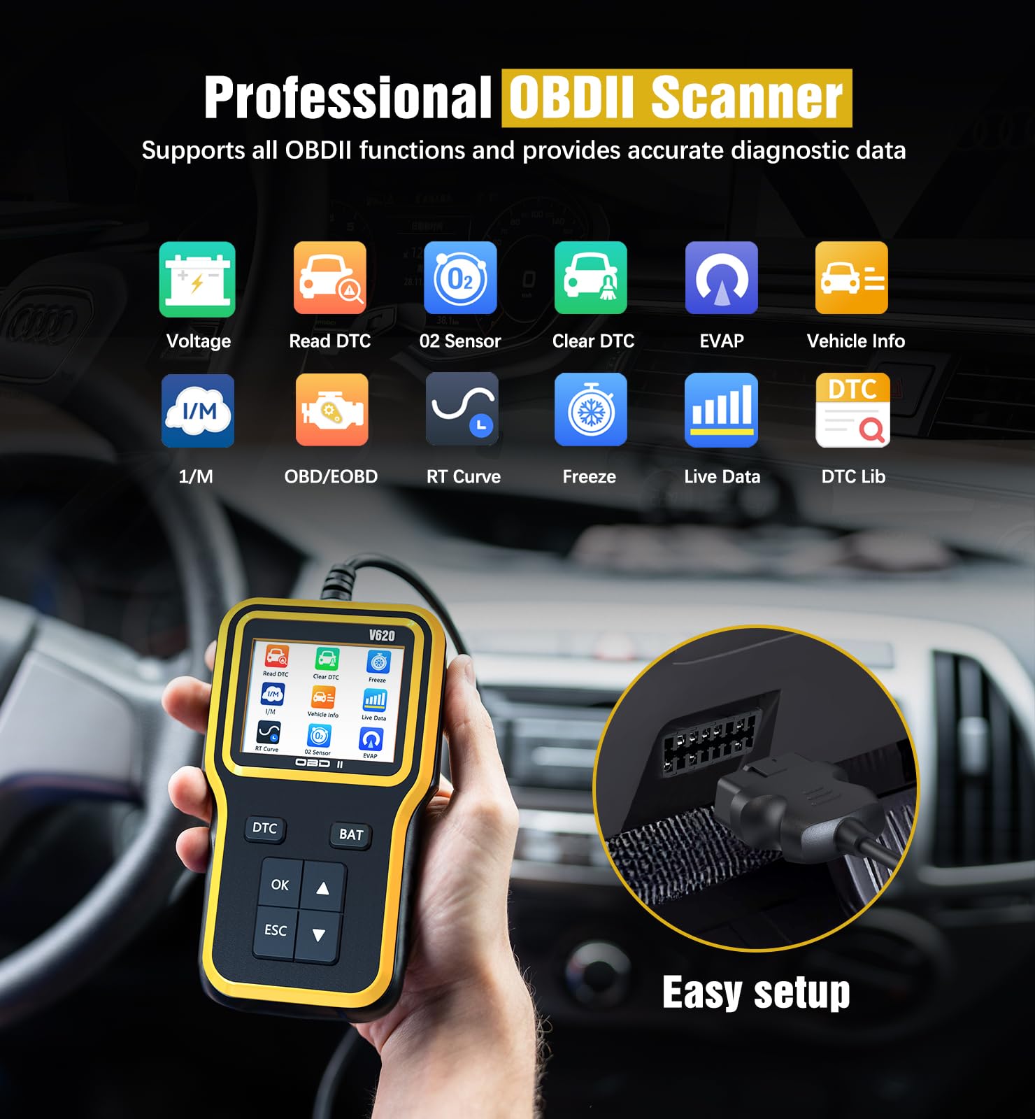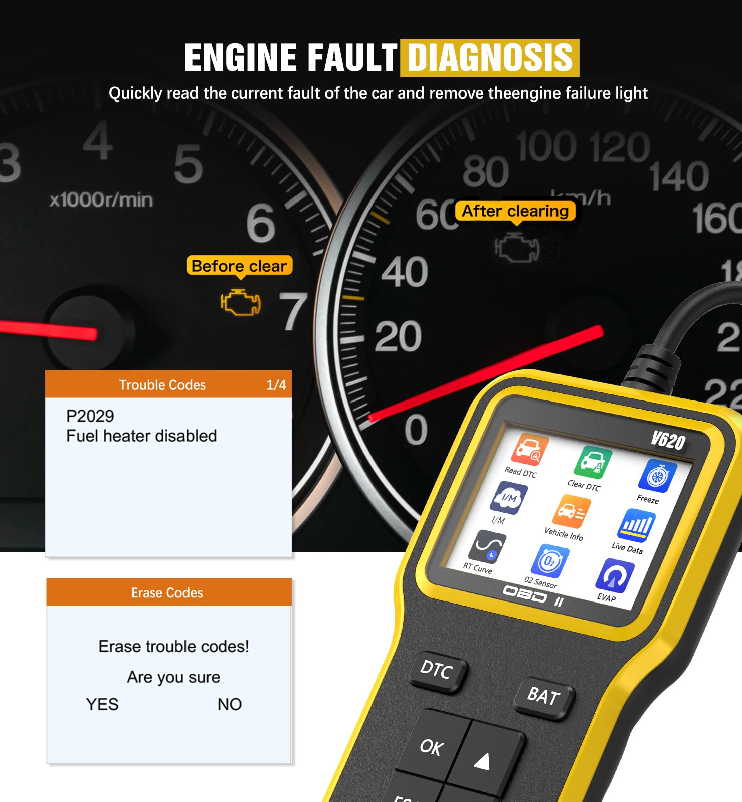 Accurate, Fast and Worth Having: The OBD2 code reader adopts an upgraded microprocessor, its powerful performance provides fast and accurate results and displays them on the screen, draws and records real-time vehicle sensor data, helps you understand the condition of the car, quickly diagnose and repair common car problems. 6 buttons for quick operation, plug-and-play design makes it easy to use, you can easily operate it without reading the manual. The OBD2 scanner is not only designed to be lightweight and portable, but also simple, accurate and fast to operate, affordable and more cost-effective, it is a must-have tool for home DIY diagnosis or mechanics to use in auto repair.