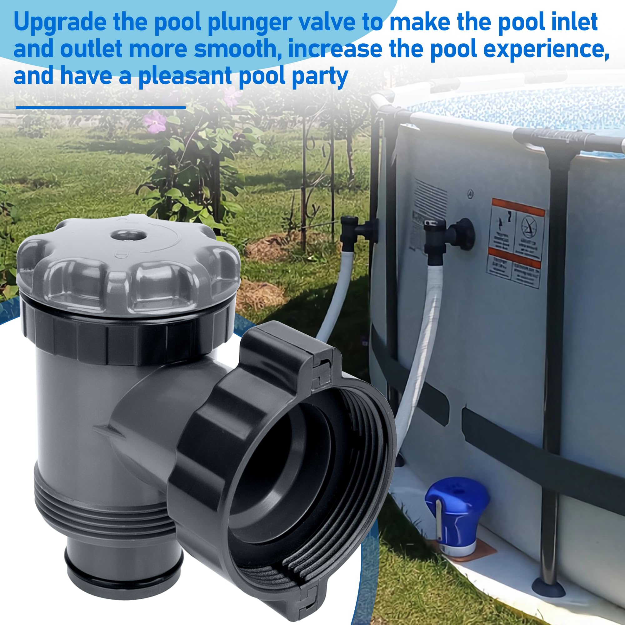 High Quality Valve: Pool plunger valve made of high-quality plastic, sunscreen, strong, can maintain high strength for long-term use,With GYPNS pool hose shut off valve, you'll have more swimming time and less maintenance time.