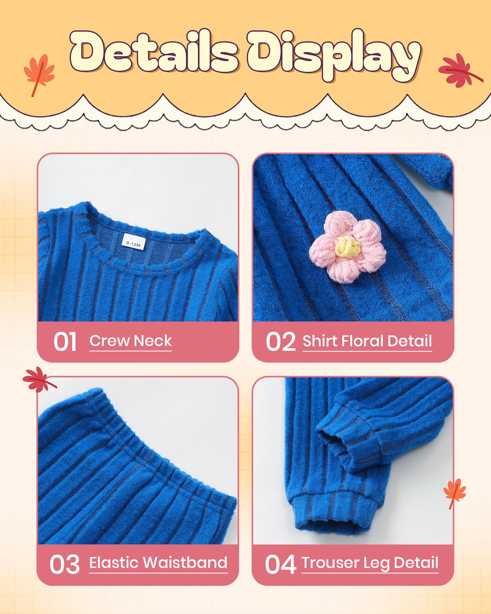 Package:the 2PC toddler girl fall outfits includes 1*sweatshirt top + 1*cute rib pants