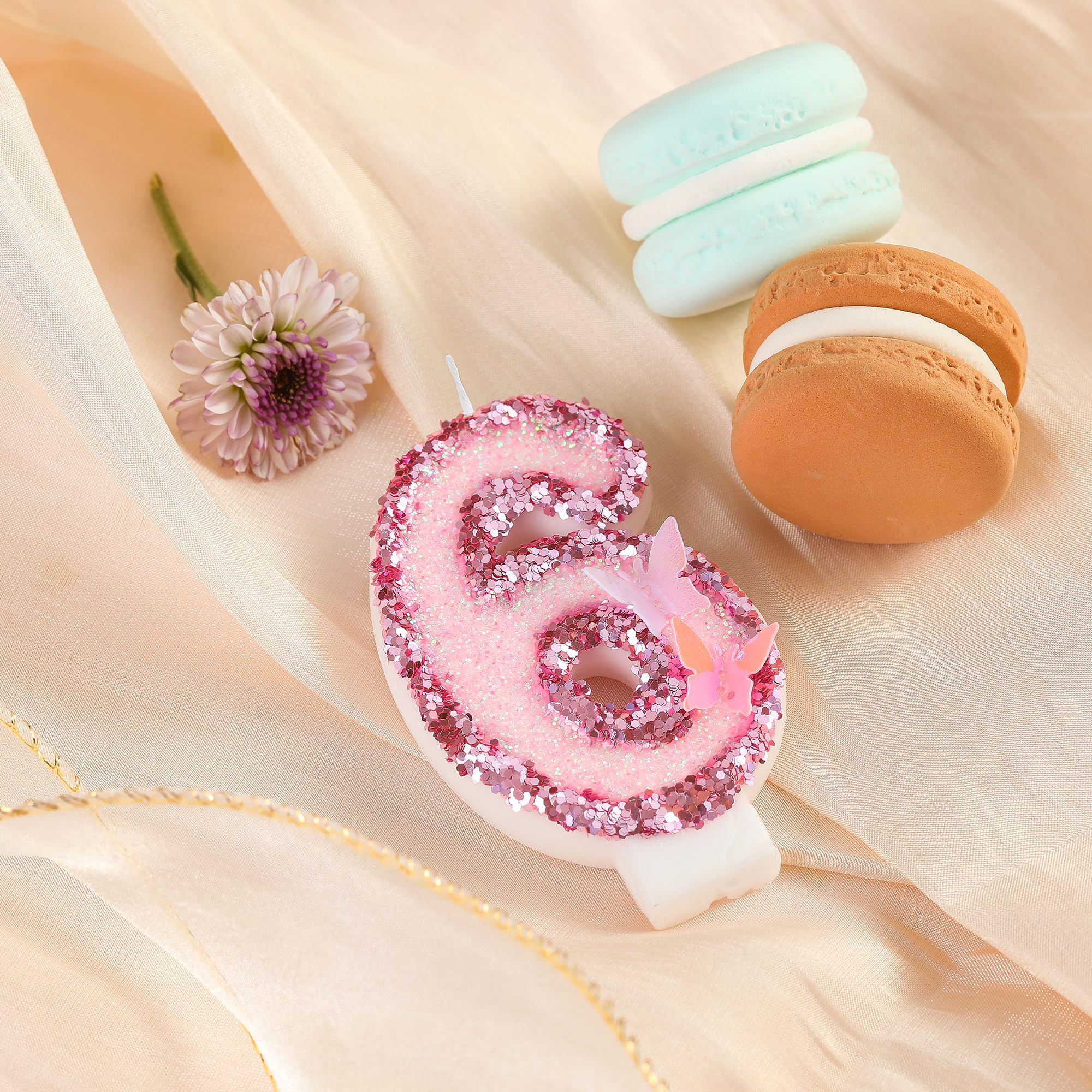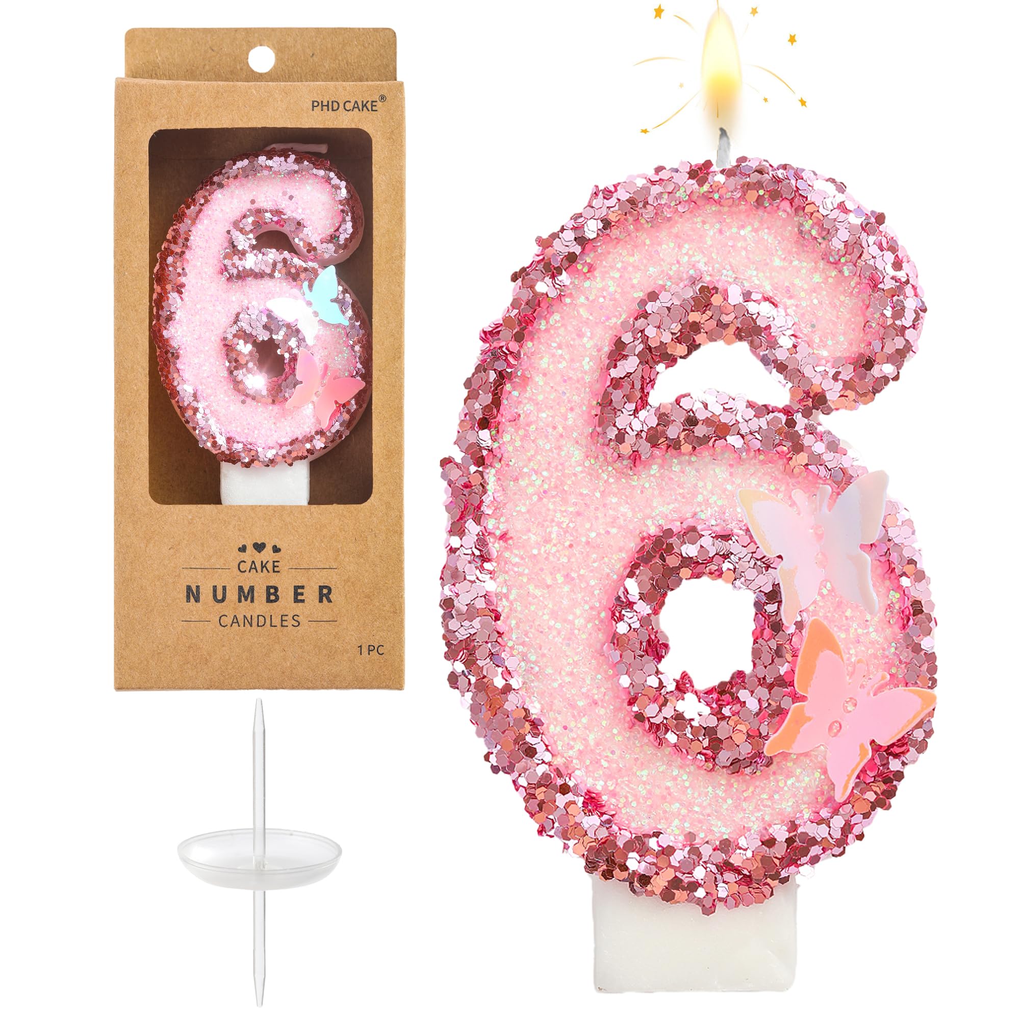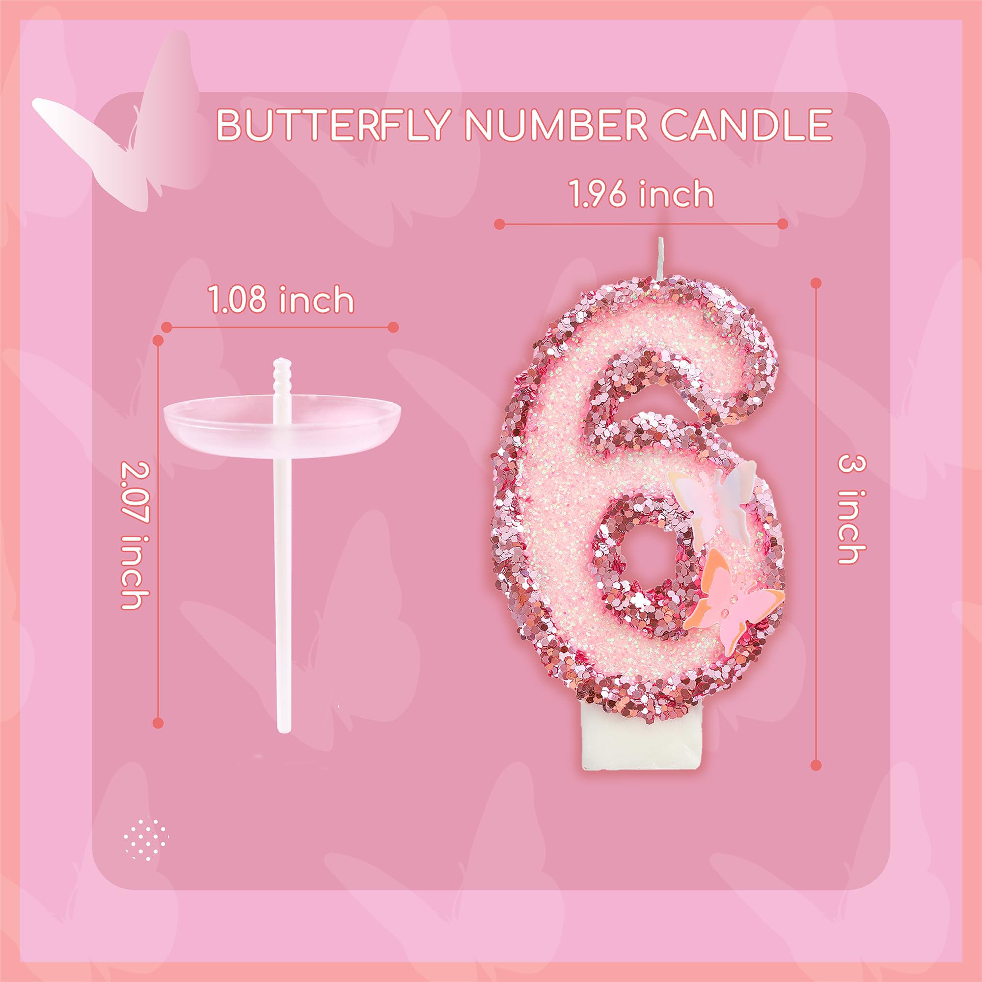 New: 3 Inch Large Pink Butterfly 6 Number Birthday Candle designed to make your cake a memorable celebration!
