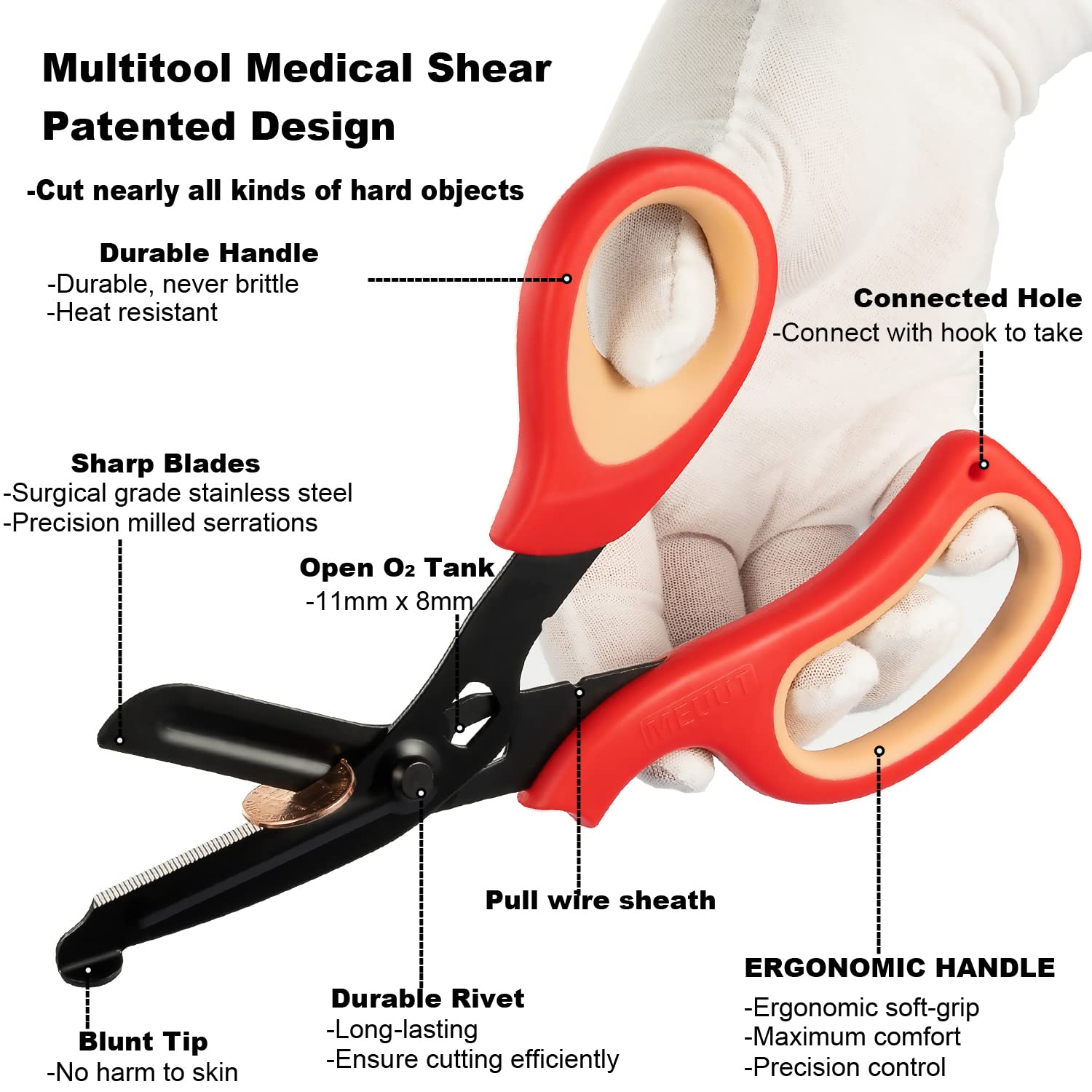 【HIGH QUILITY】: 100000 times cutting test passed, heavy duty trauma shears, made of surgical grade stainless steel 440 blades with milled serrations, fluoride-coated non-stick surface with lightweight and soft grip handle.