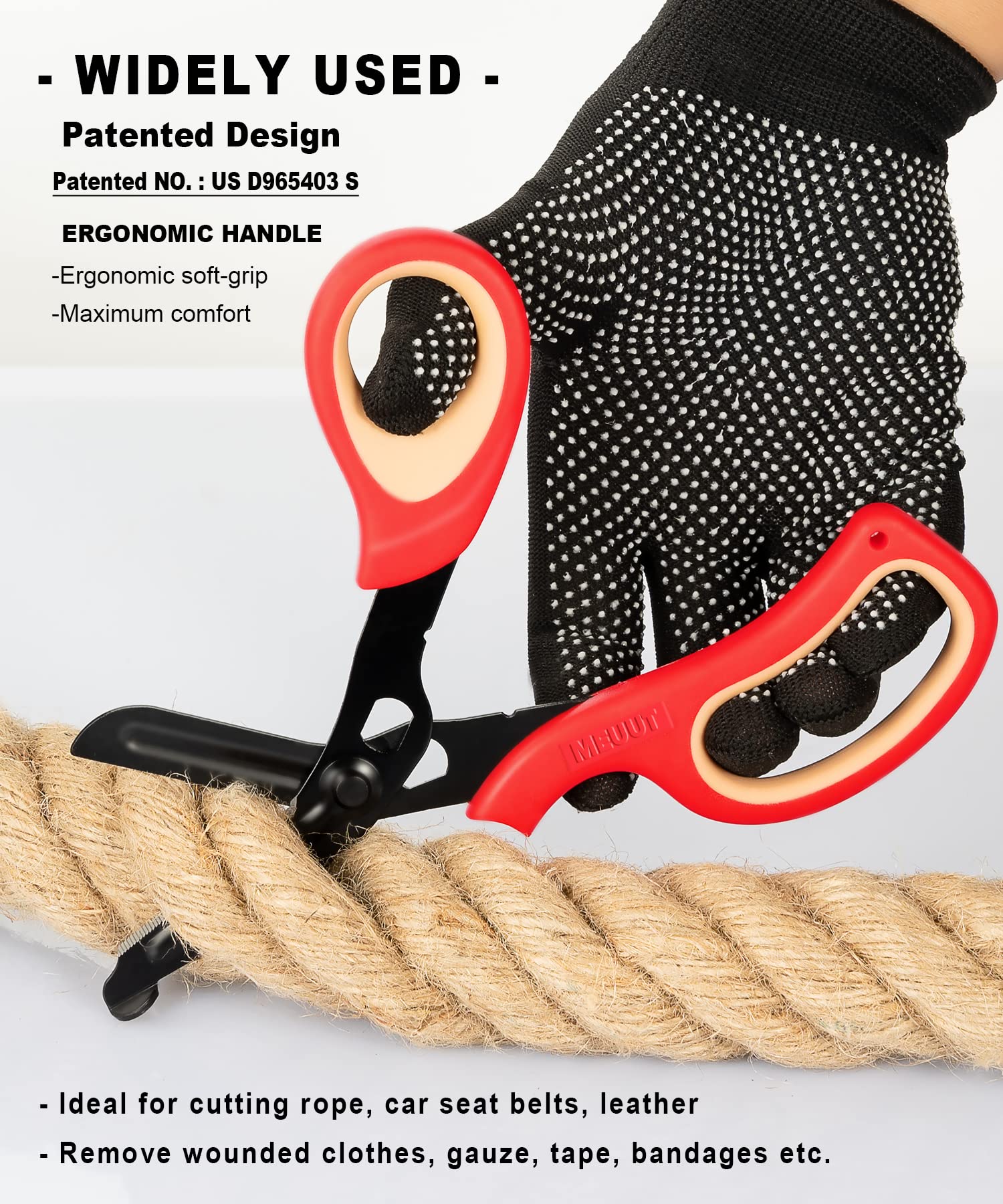 【ALL-PURPOS】: Cut anything safely and efficiently with these sharp scissors. Ideal for cutting ribbon, burlap, rope, car seat belts, leather, remove wounded clothes, gauze, tape, bandages etc. Perfect for outdoors, first aid, nurse, doctor, firefighter, gardening, household.