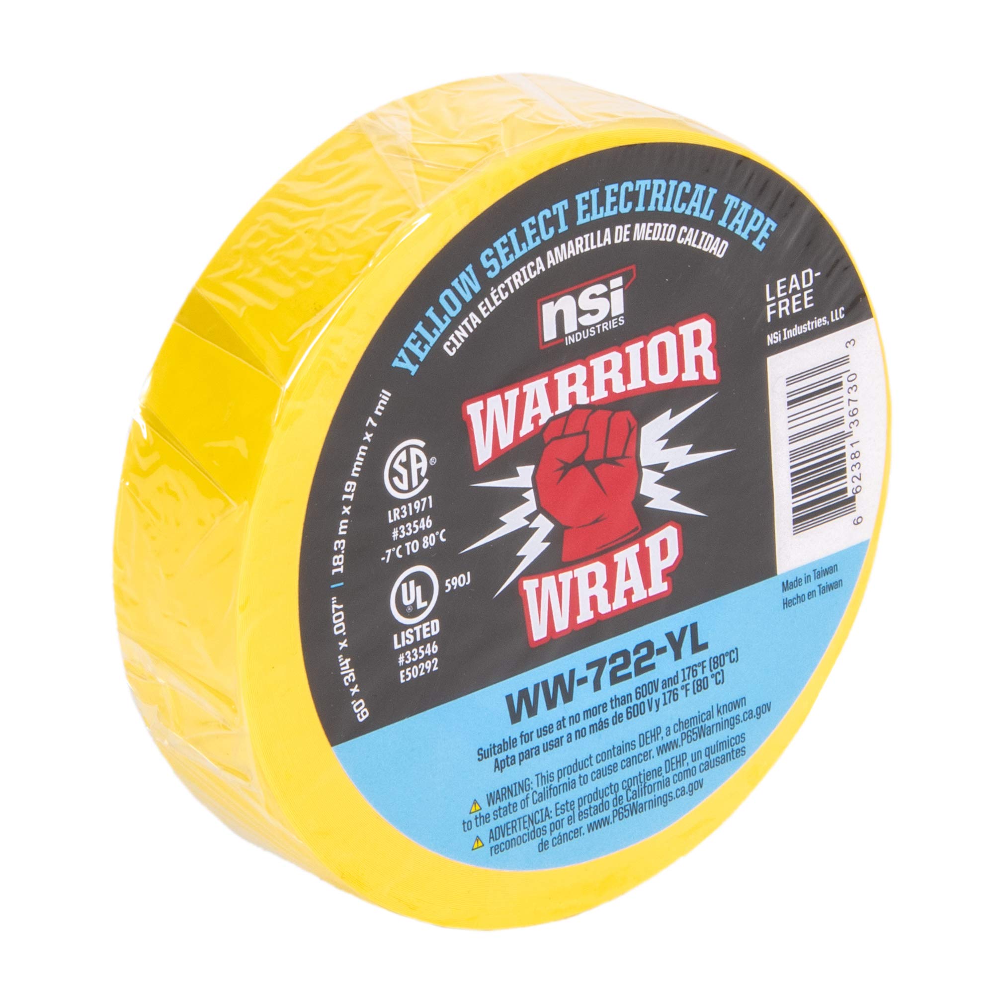 NSi Industries WarriorWrap Select 3/4 in. x 60 ft. 7 mil Vinyl Electrical Tape, Yellow (WW-722-YL)