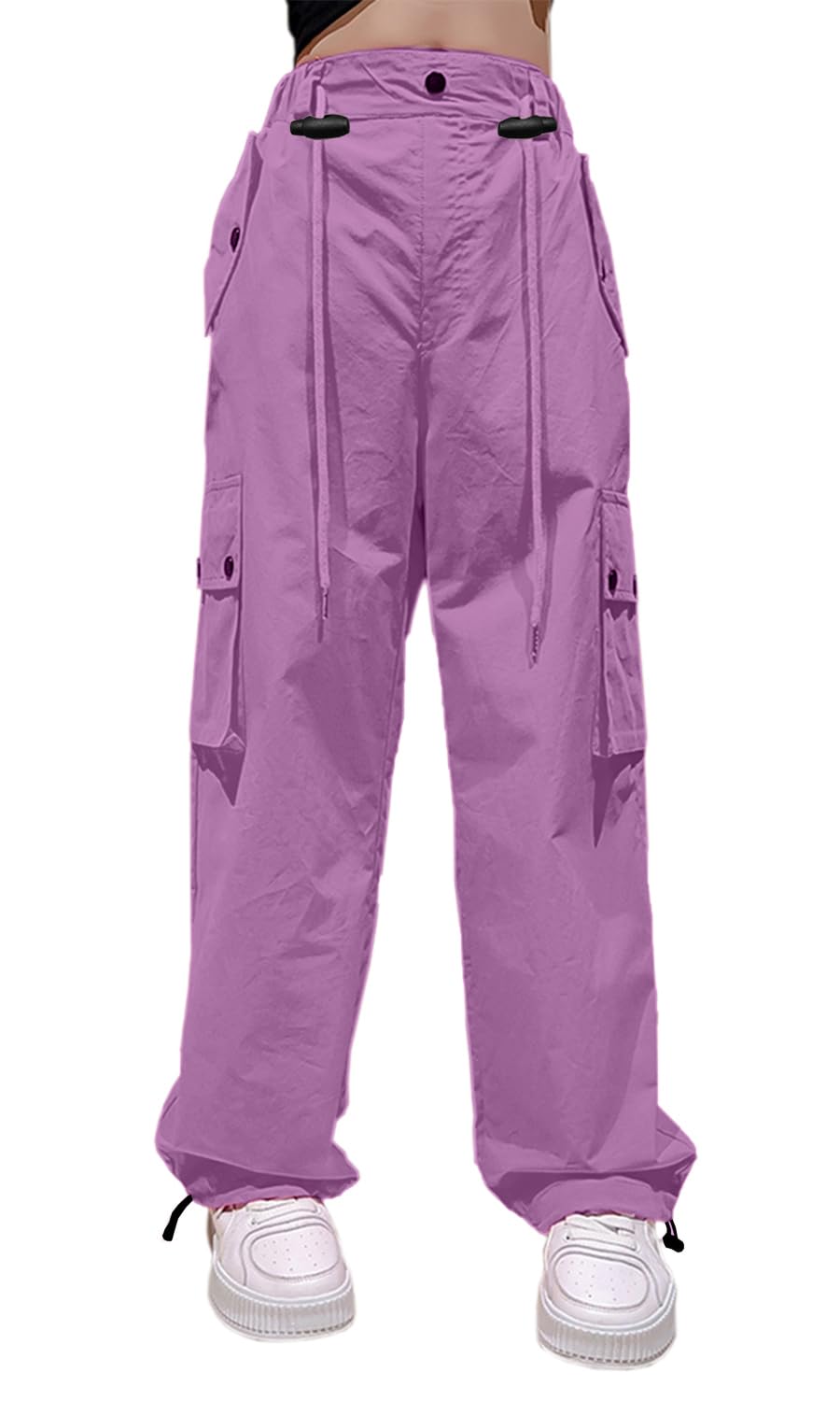Design: These Girls Y2k Cargo Parachute Pants feature a modern design with drawstring waist and cuffs, offering two different ways to wear them.