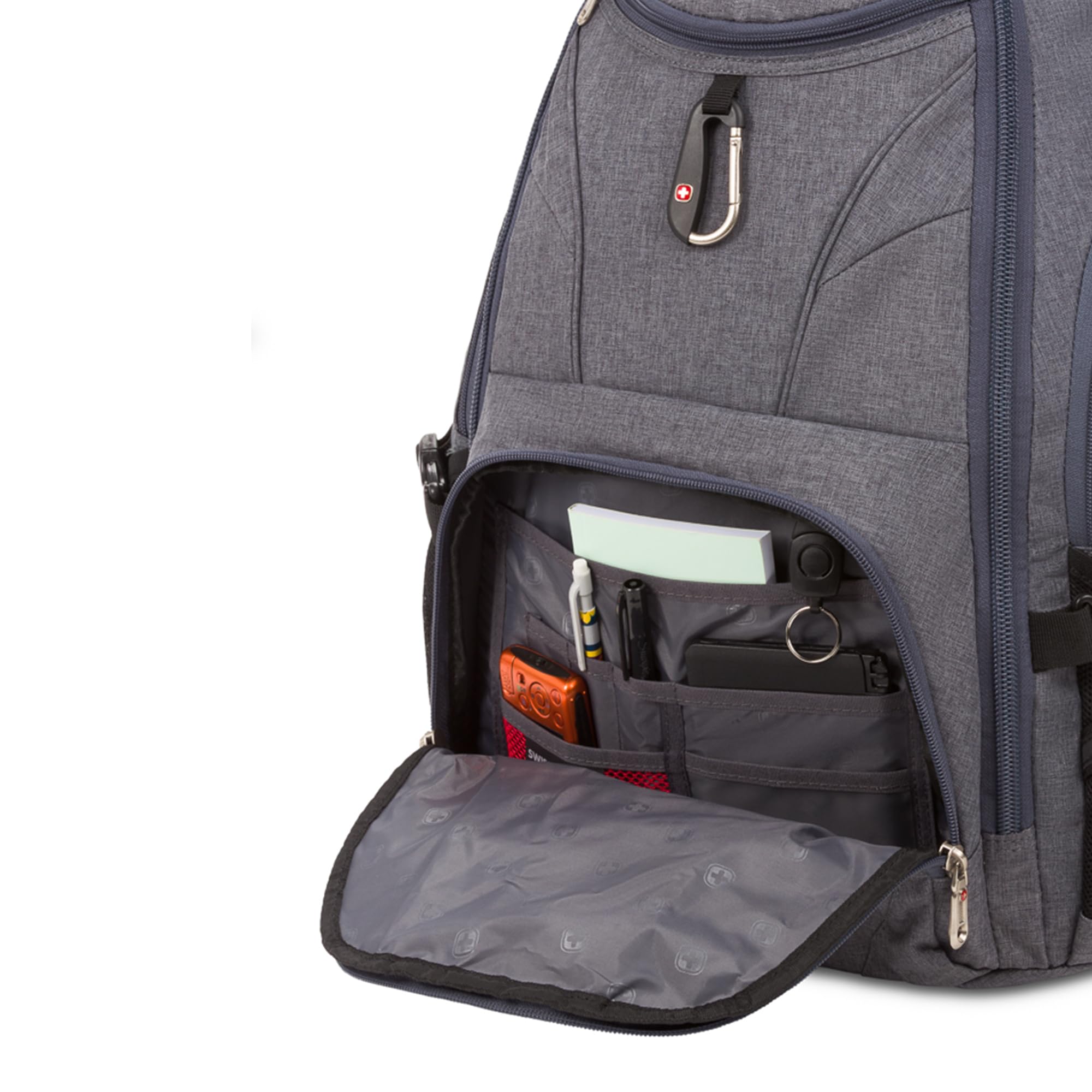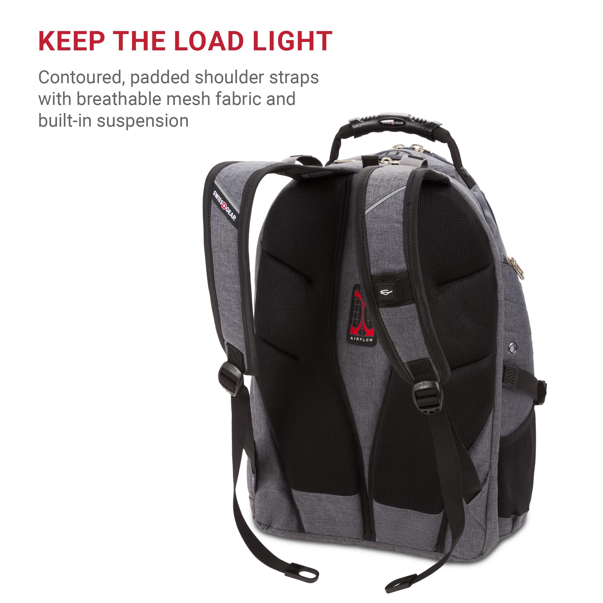 Description The SWISSGEAR 1900 ScanSmart TSA Laptop Backpack is built for professionals, students, and travelers who need durability, smart organization, and travel-ready functionality in a reliable everyday backpack. Constructed from rugged 1200D polyester fabric, this backpack is designed to withstand daily use while maintaining a clean, structured look. The ScanSmart lay-flat compartment allows for faster airport security screening and is designed to fit most 17-inch laptops, along with tablets up to 10 inches. Dedicated protective sections help keep devices secure, while multiple compartments and internal organization provide space for accessories, chargers, and everyday essentials. With overall dimensions of 19 x 14.25 x 9 inches and a 31L capacity, this backpack offers ample storage for work, school, or travel. The expandable storage layout and thoughtfully designed pockets make it easy to stay organized throughout the day. Comfort-focused features include a padded airflow back panel and ergonomic shoulder straps for ventilation and support during extended wear. Additional travel-ready details such as an RFID-blocking pocket and trolley sleeve allow for seamless travel and added security. Backed by a 5-year warranty, the SWISSGEAR 1900 ScanSmart Laptop Backpack delivers dependable performance, durable construction, and versatile functionality for everyday use and travel.
