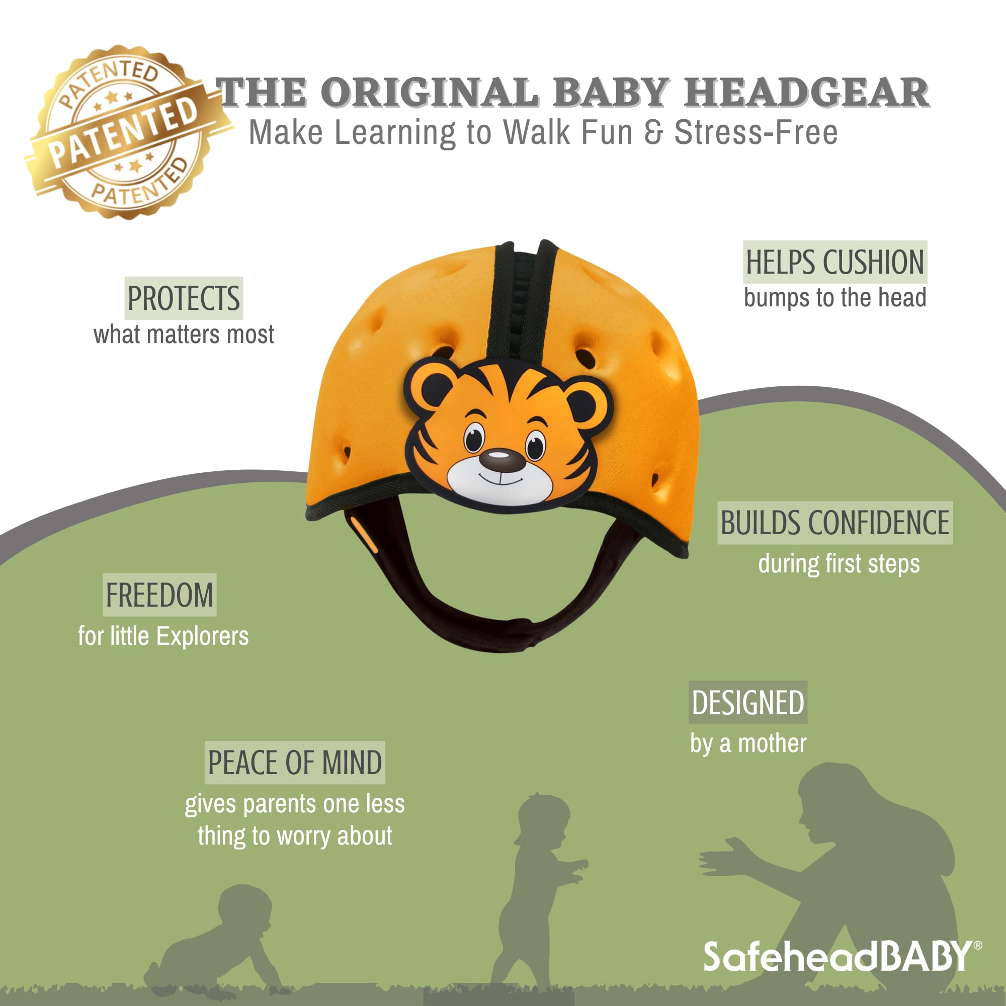 Patented cushioning for added peace of mind – The SafeheadBABY helmet features strategic padding that gently supports delicate areas like the fontanelles and back of the head during minor bumps or tumbles