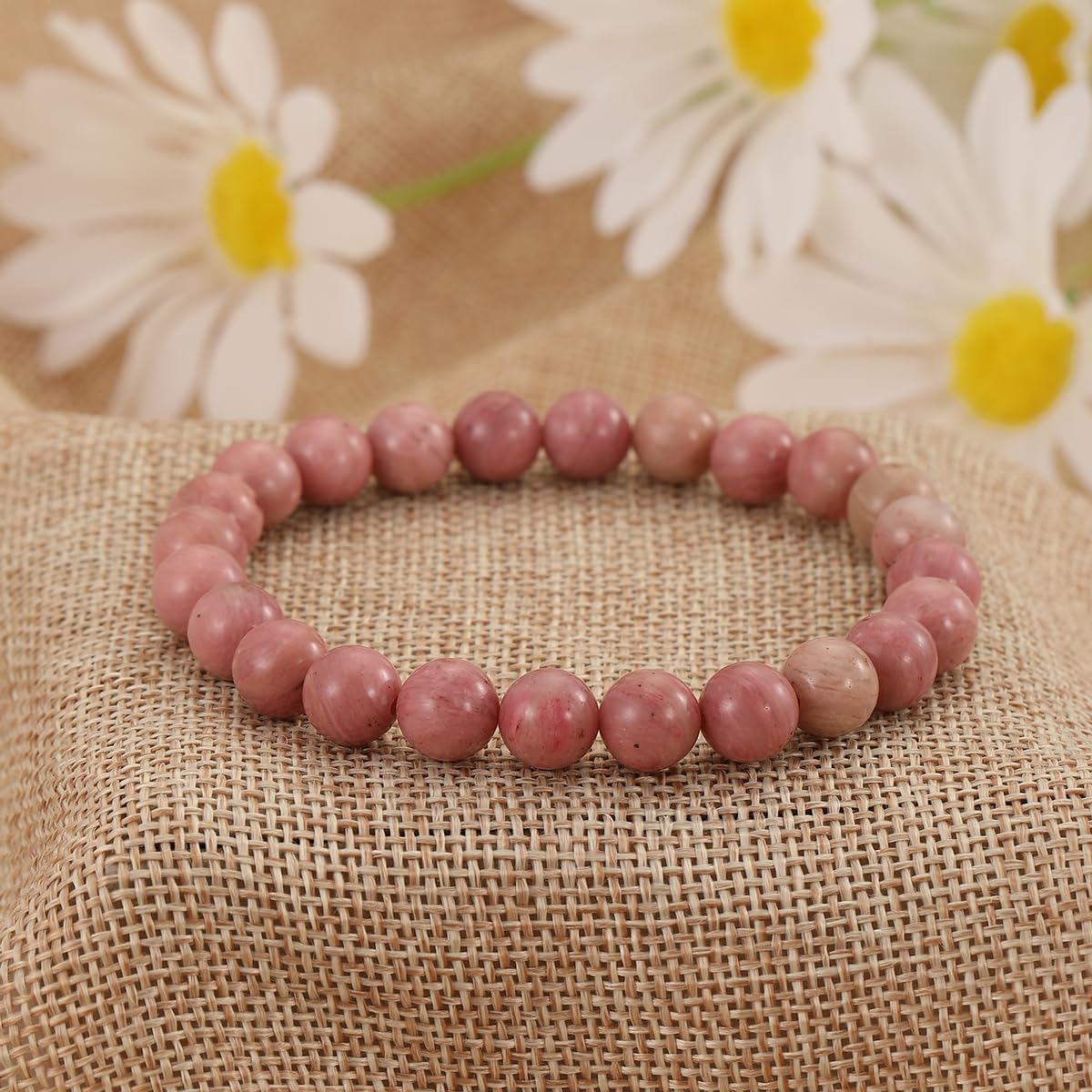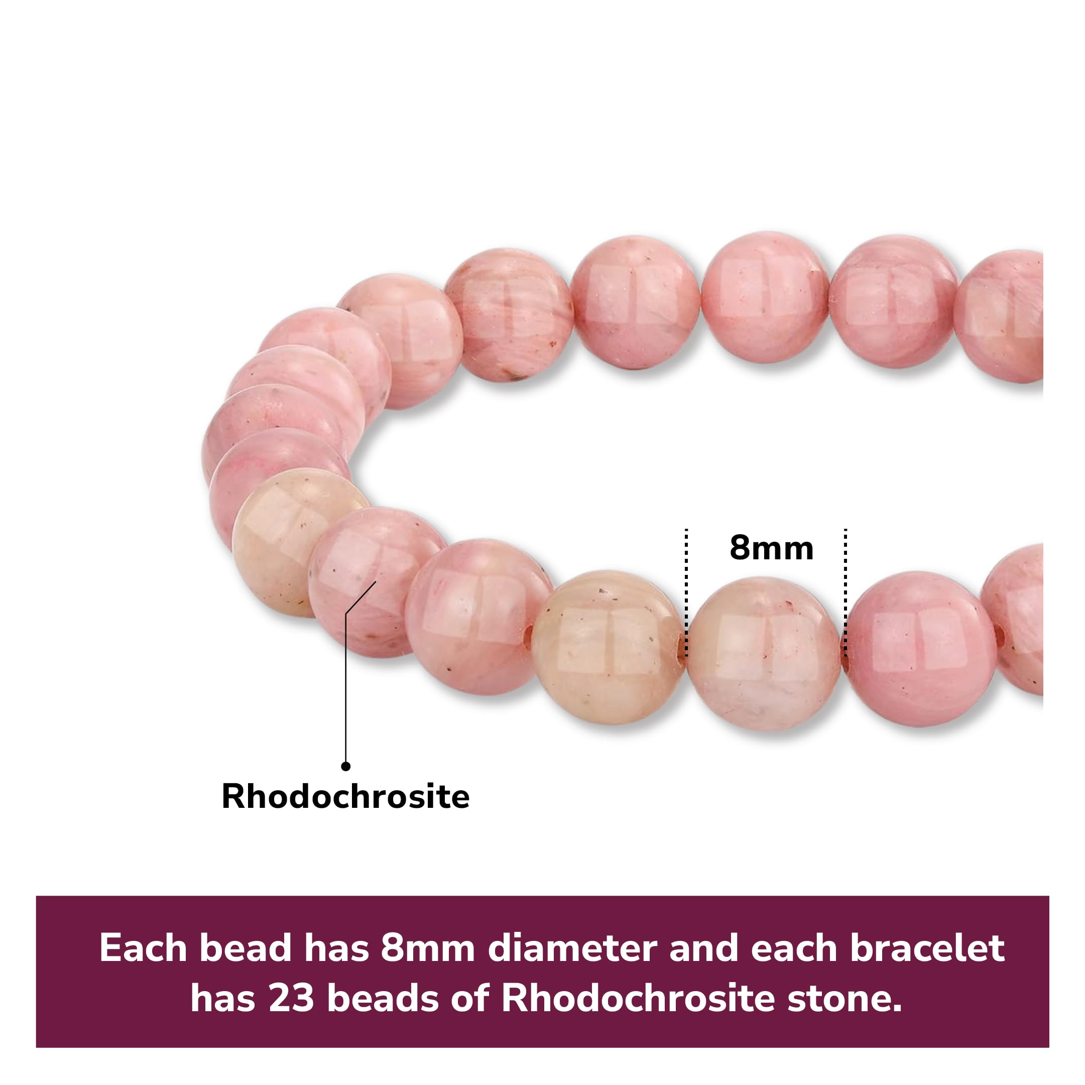 ✨ Premium Quality ✨ This bead beautiful bracelet features genuine Rhodochrosite gemstones, meticulously handcrafted, polished and strung on a durable, elastic cord for comfortable, long-lasting wear. Each stone’s natural pink hues are showcased in this elegant design.