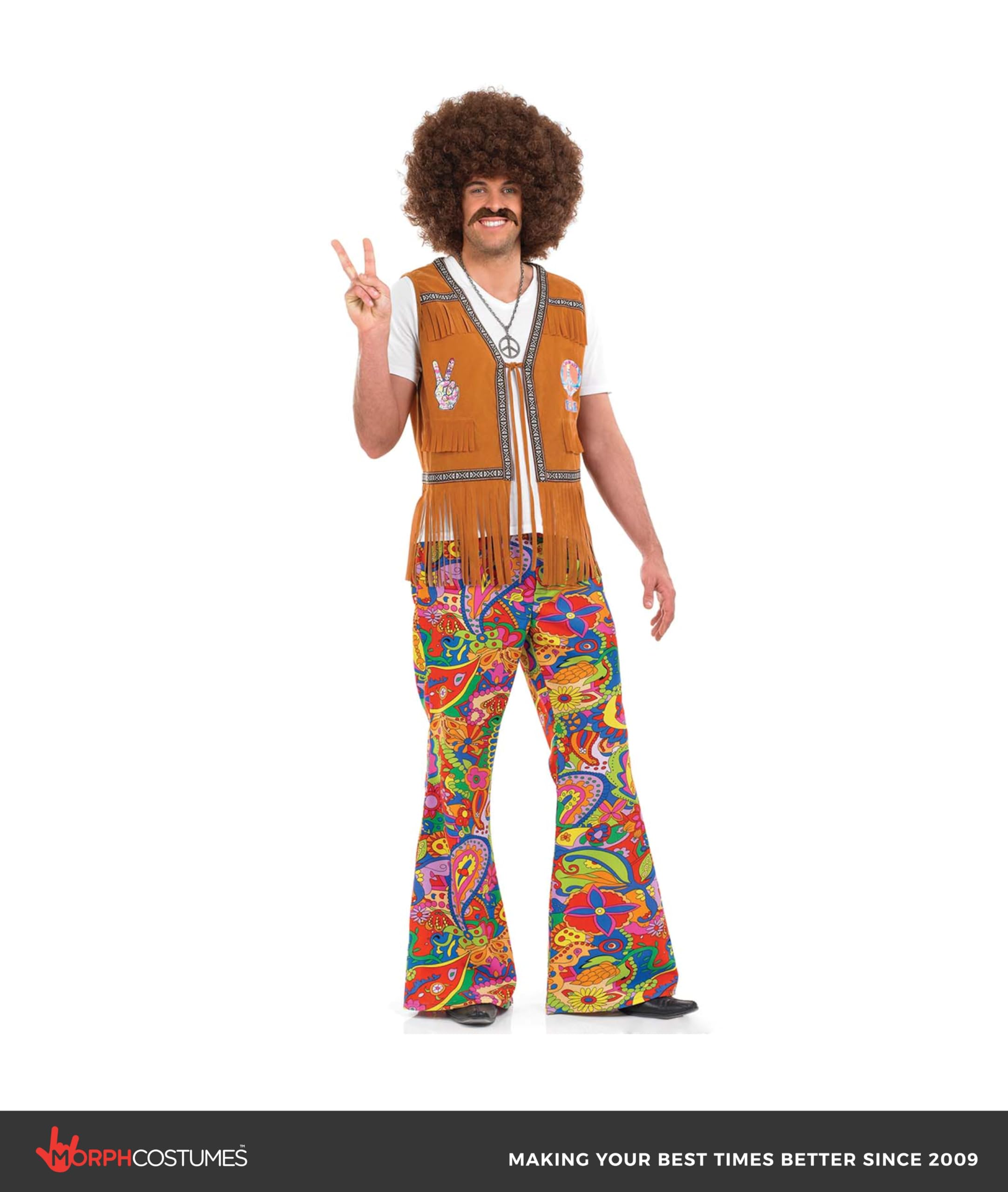 All about comfort and quality: Made from lightweight, stretchy polyester, this hippie mens costume is designed for long-lasting comfort, so you can move and groove from dusk till dawn at every party.