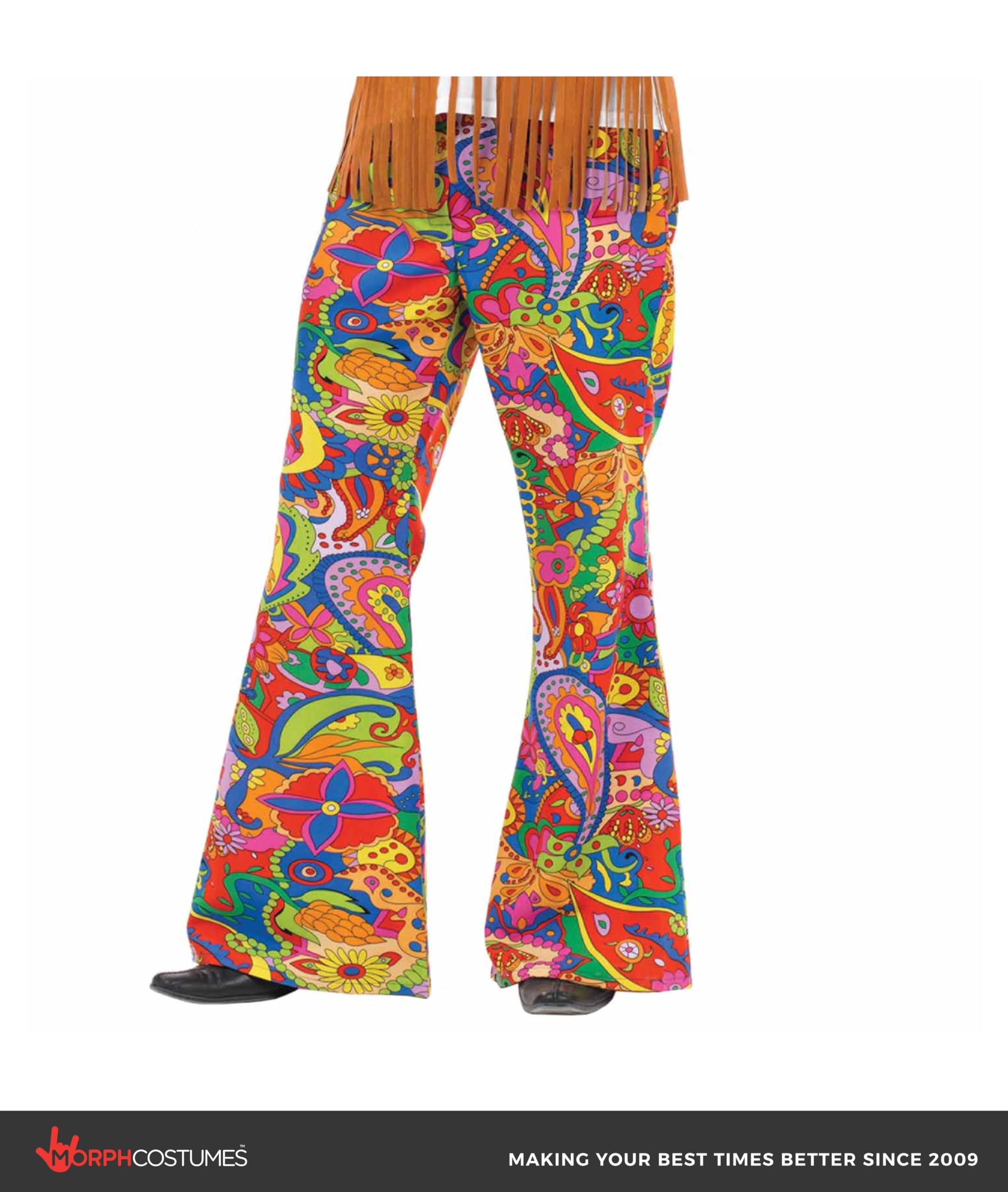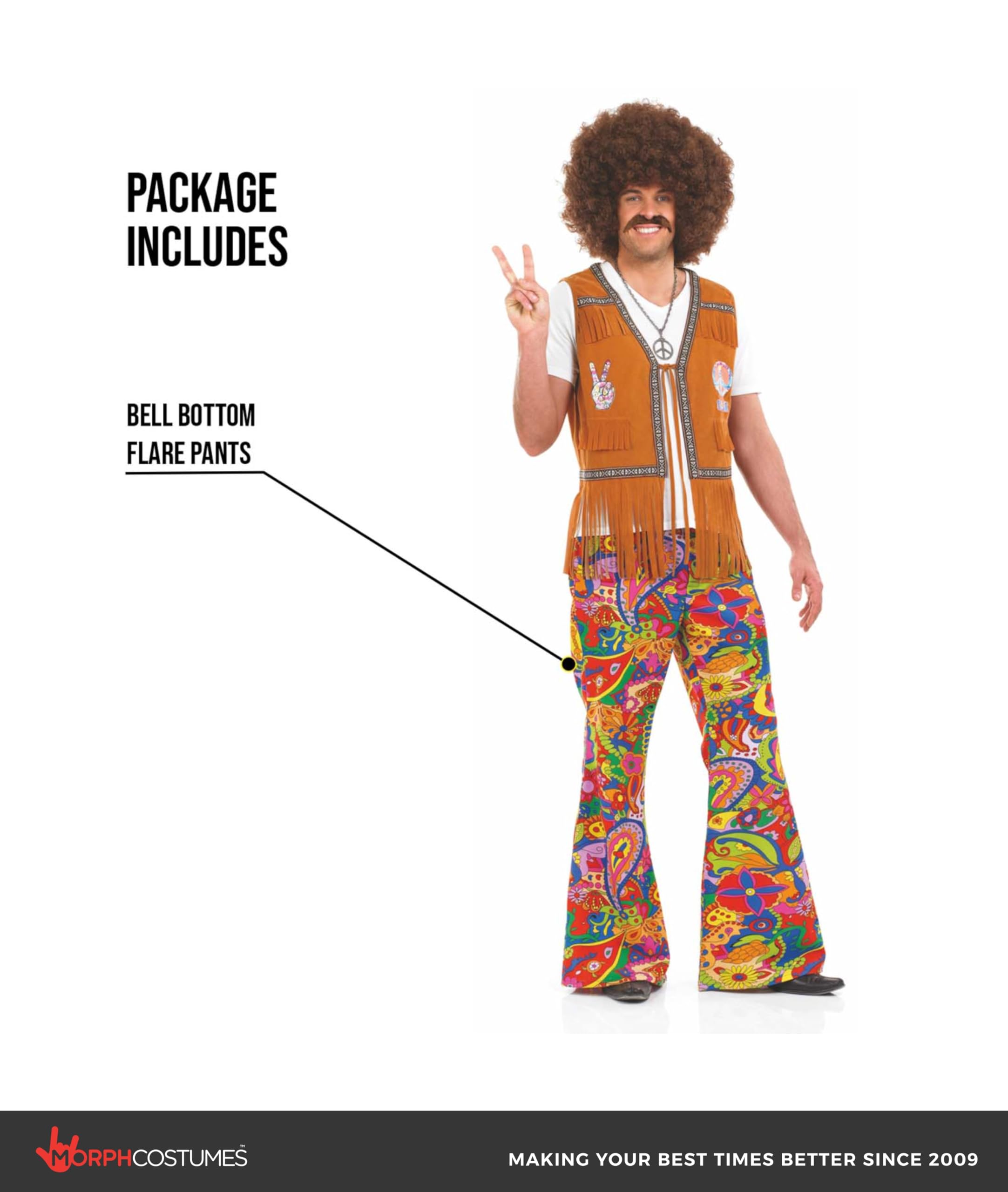 Easy, flexible sizing: Available in Medium, Large, and XL, these mens hippie costume pants offer a relaxed fit for a range of body types. Refer to the size chart for your ideal fit in halloween costumes for men.