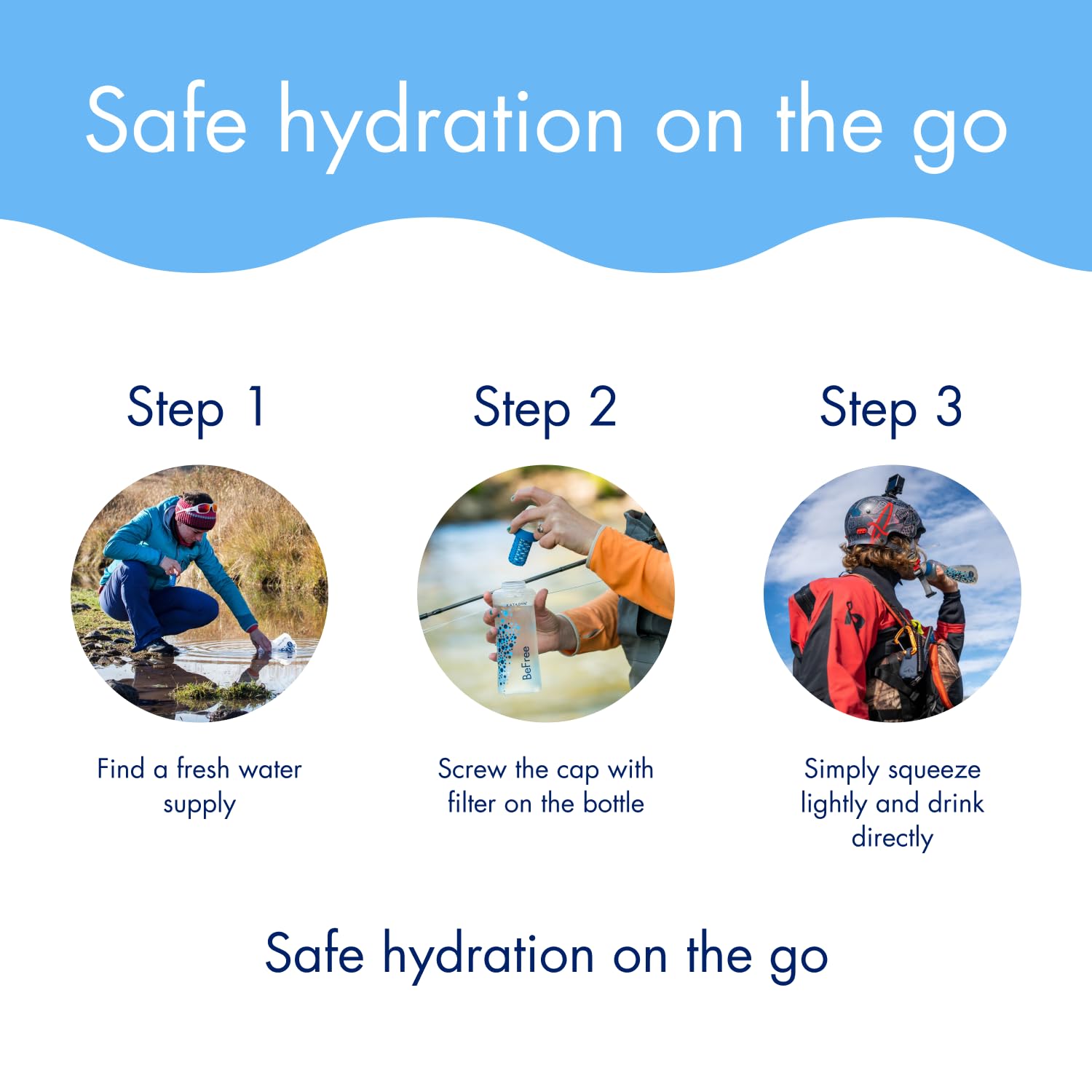 HIGH-PERFORMANCE FILTER: The BeFree's 0.1 micron hollow fiber microfilter is tested to remove bacteria (99.9999% Klebsiella terrigena) and protozoan cysts (99.9% Giardia and Cryptosporidium)