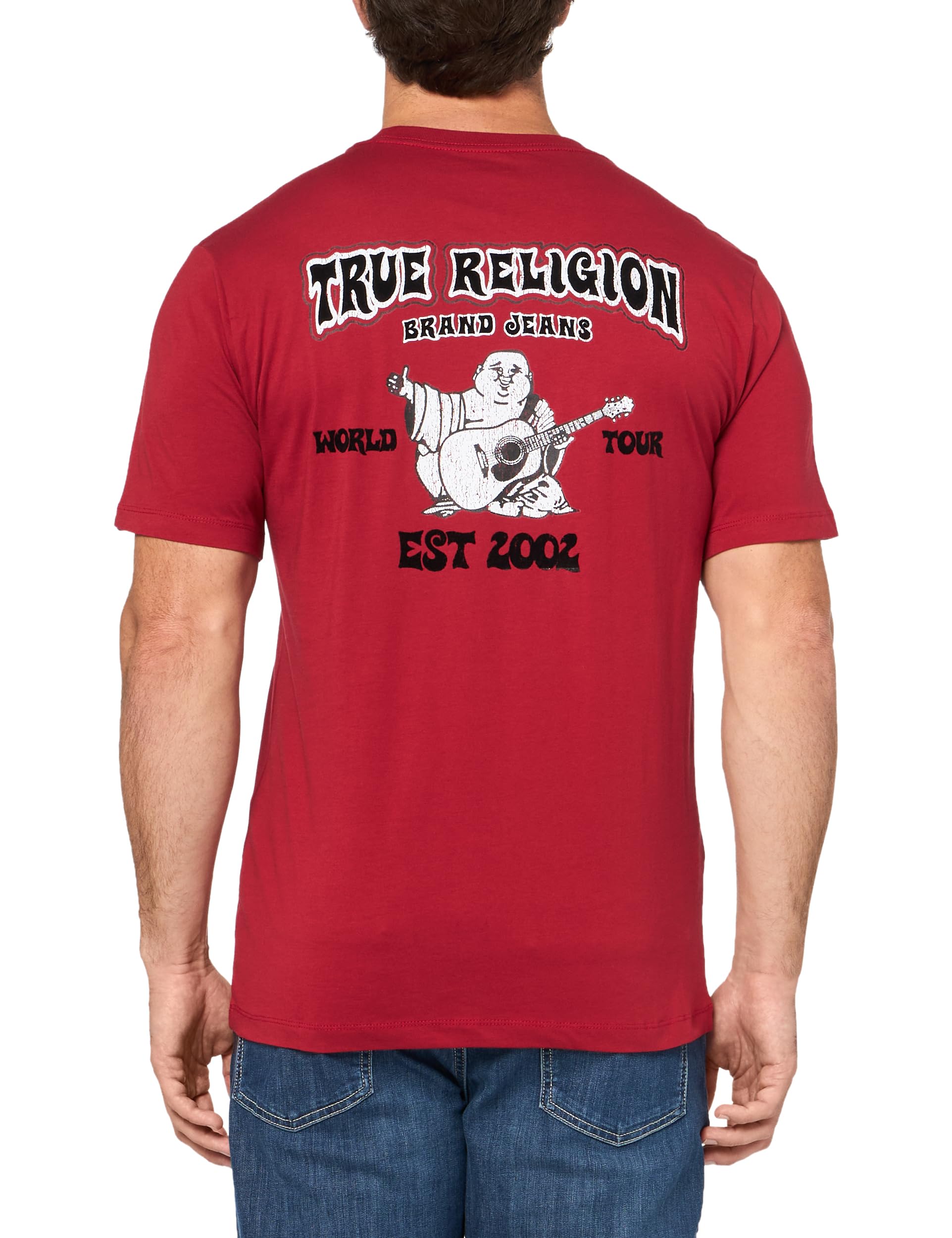 Effortless Cool: Whether worn alone or layered under a jacket or hoodie, the True Religion Men's SS Vintage Flock Tee effortlessly enhances your casual style with its vintage-inspired design and comfortable fit.