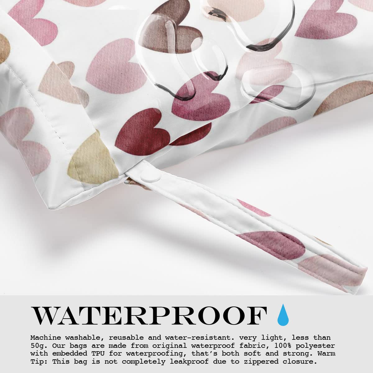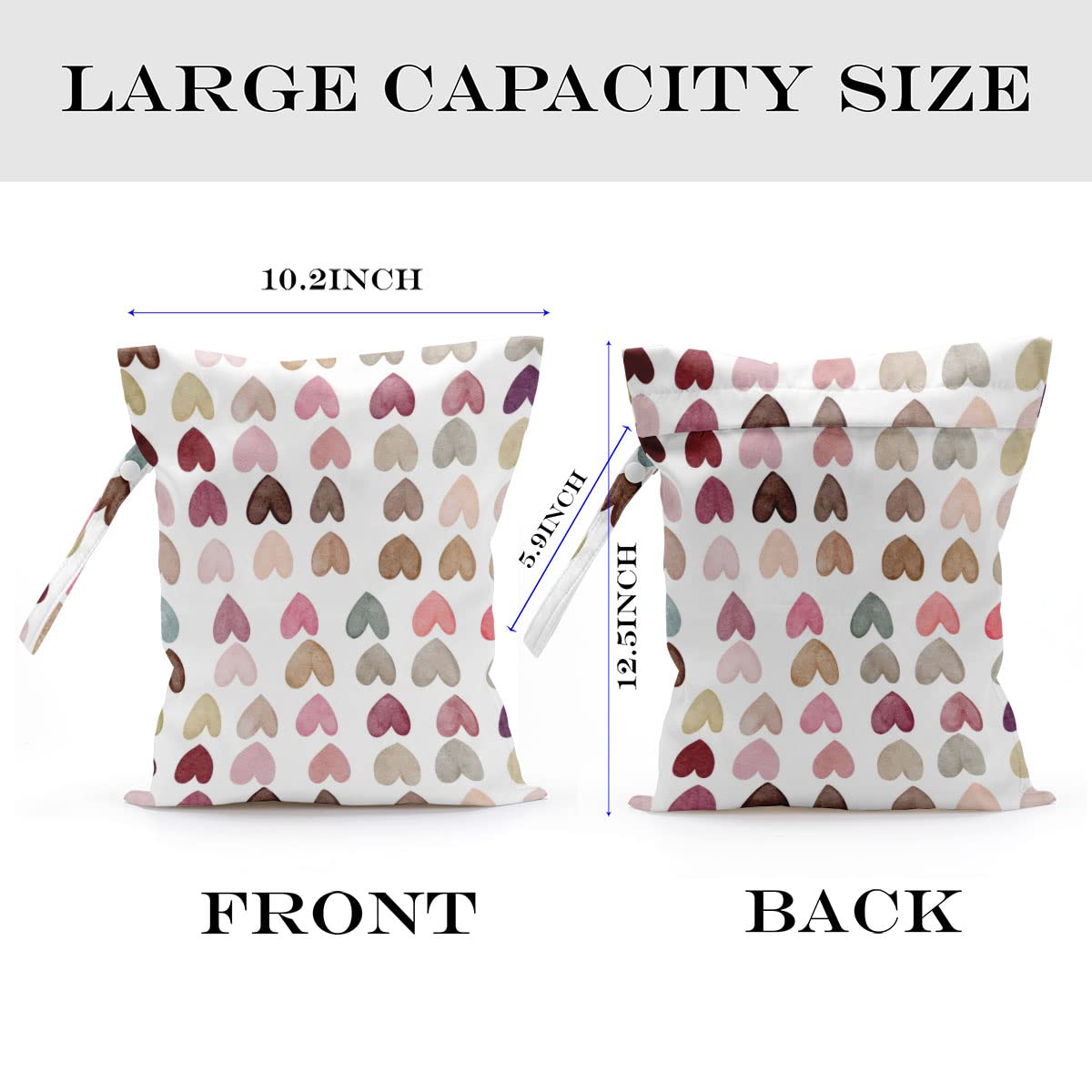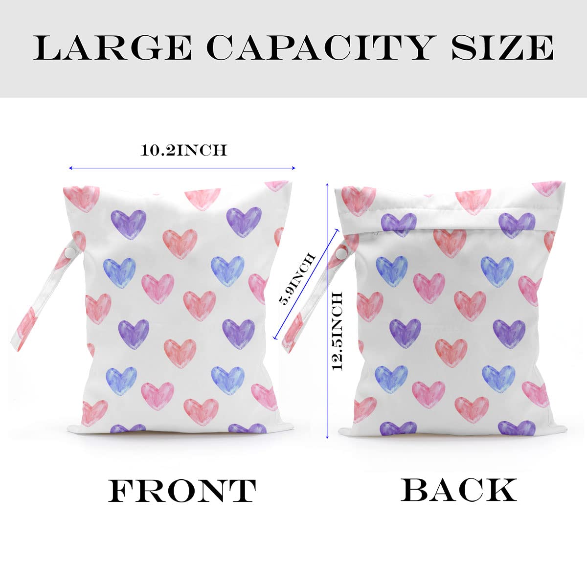 💕 MULTI-FUNCTIONAL – Our wet bags have lots of uses. They are suit for carrying diapers, dirty gym clothes, wet swimsuits and sanitary napkin, menstrual pad; not just for wet stuff - these bags make excellent organizers for toys, cosmetics, accessories, toiletries, electronics, travel and more. With a snap handle, snap your bag wherever you need it - changing,tote bag, table or suitcase.